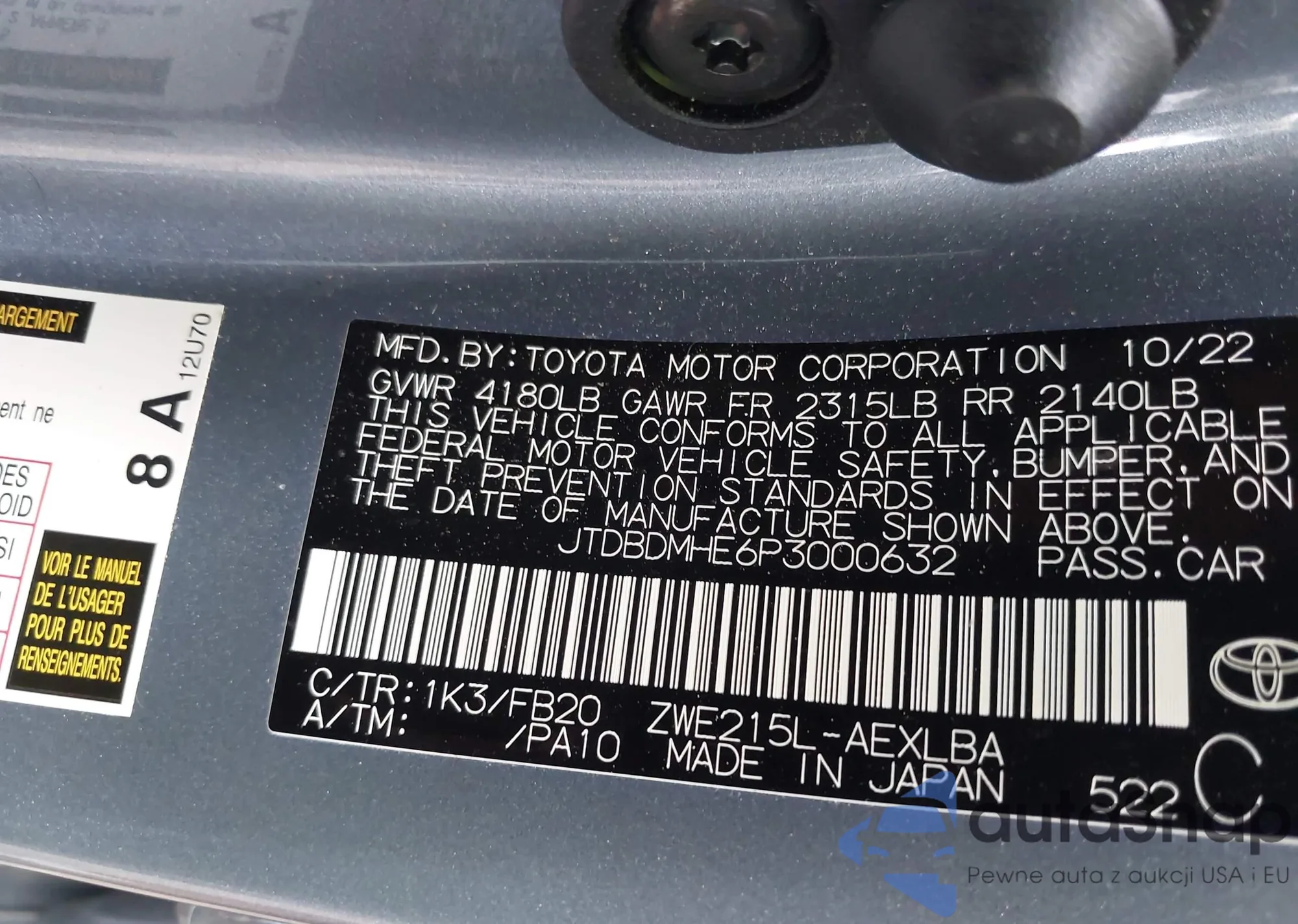 VIN: JTDBDMHE6P3000632