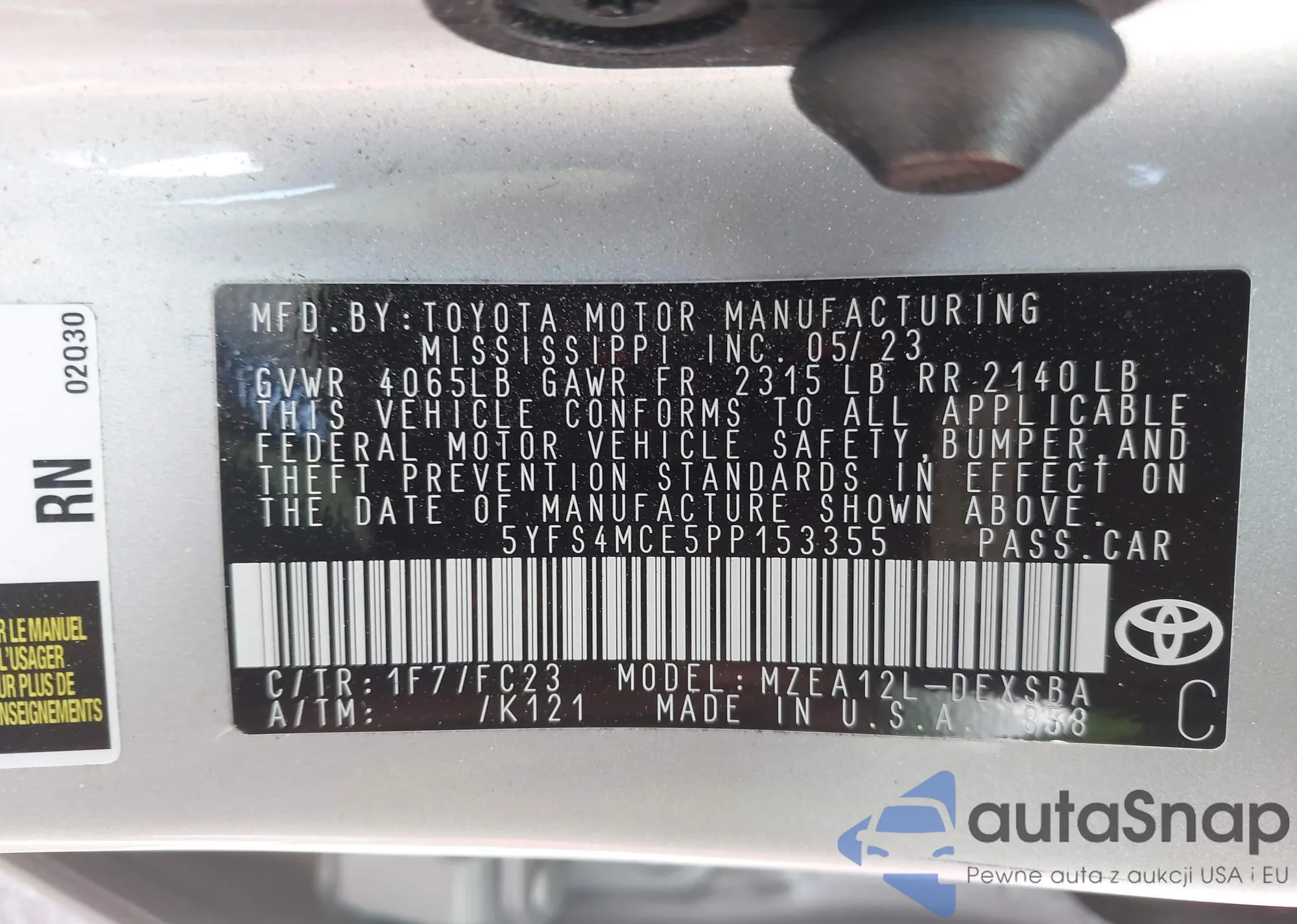 VIN: 5YFS4MCE5PP153355