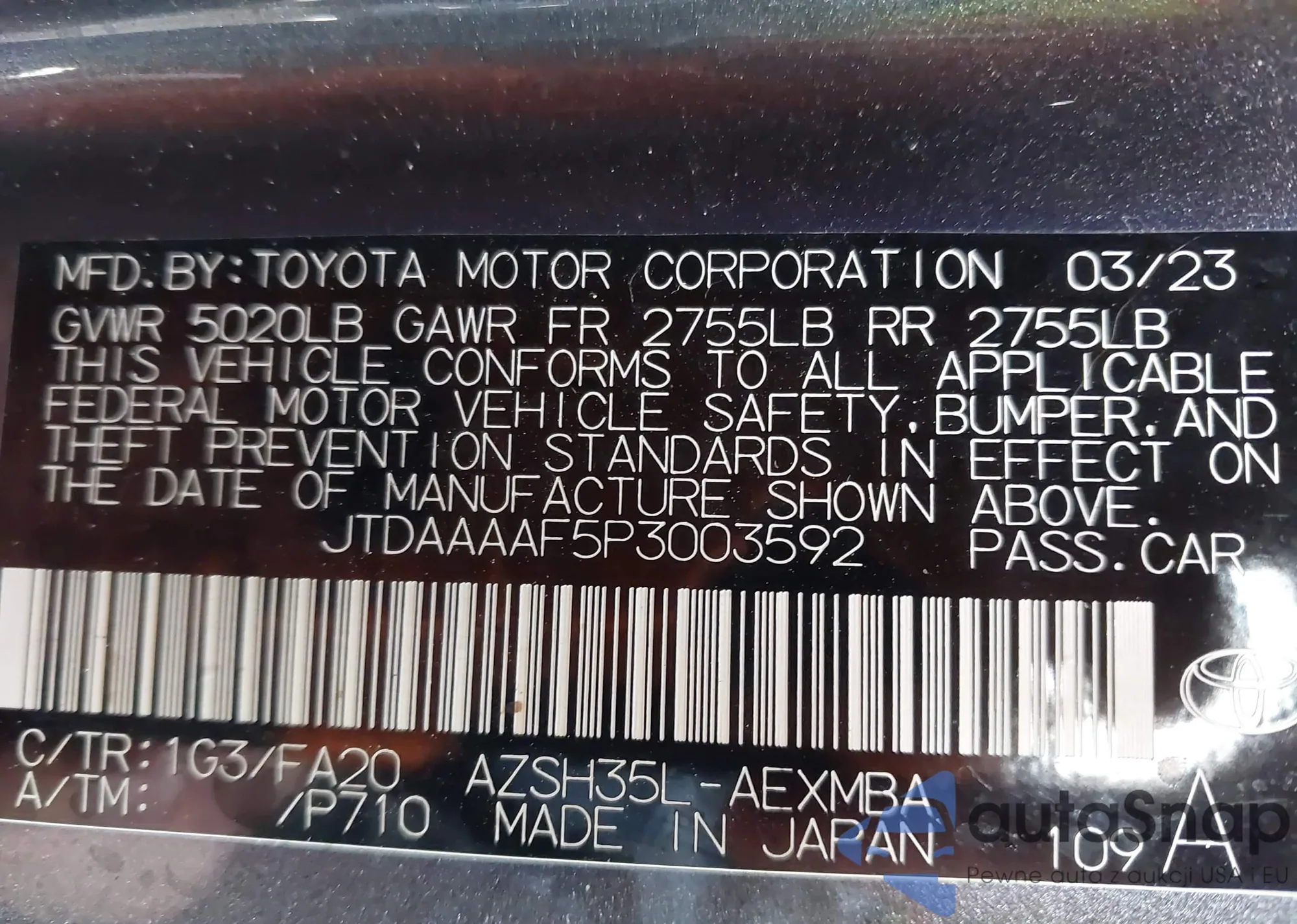 Автомобиль Toyota Crown Signia 2023 (VIN JTDAAAAF5P3003592) имеет документы, препятствующие регистрации. Могут возникнуть сложности при экспорте и регистрации. Обратитесь к экспертам AutaSnap для поиска альтернатив.
