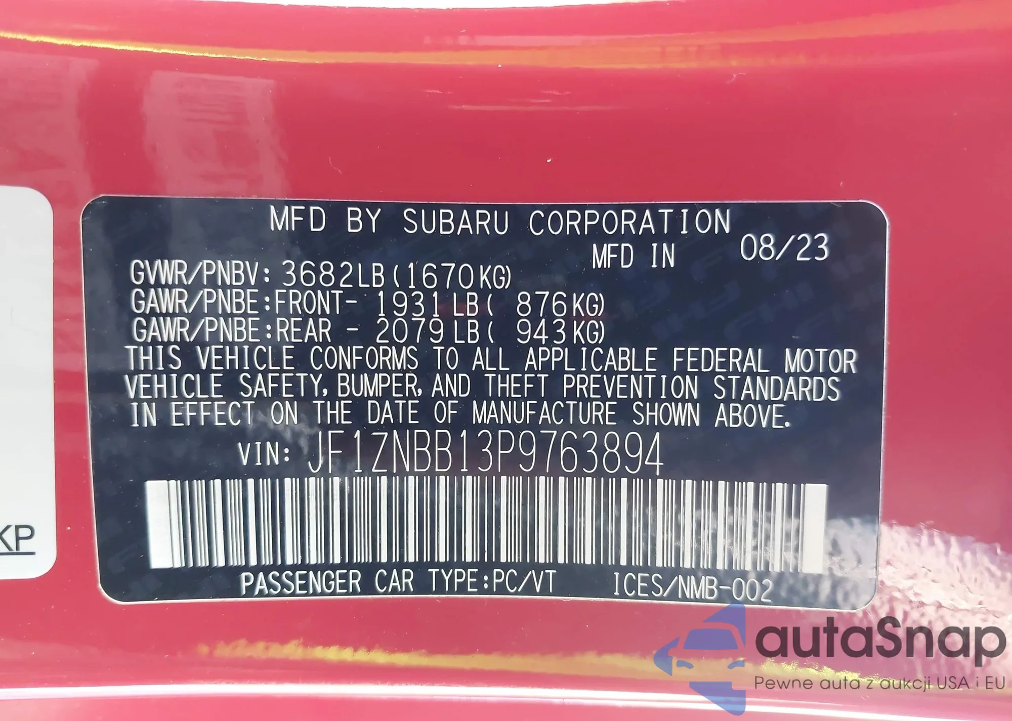 Автомобиль Toyota GR 86 2023 (VIN JF1ZNBB13P9763894) имеет документы, препятствующие регистрации. Могут возникнуть сложности при экспорте и регистрации. Обратитесь к экспертам AutaSnap для поиска альтернатив.