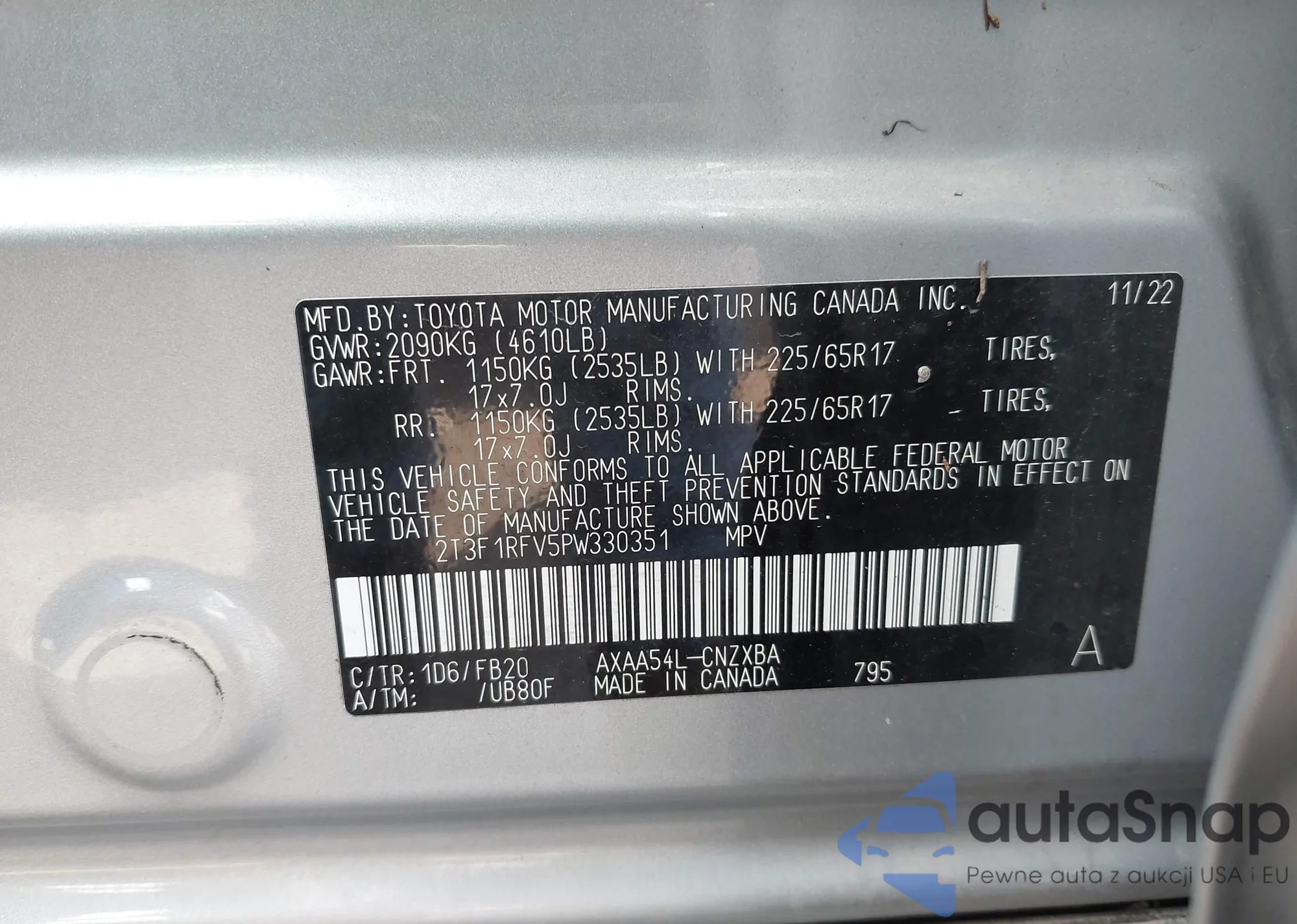 VIN: 2T3F1RFV5PW330351