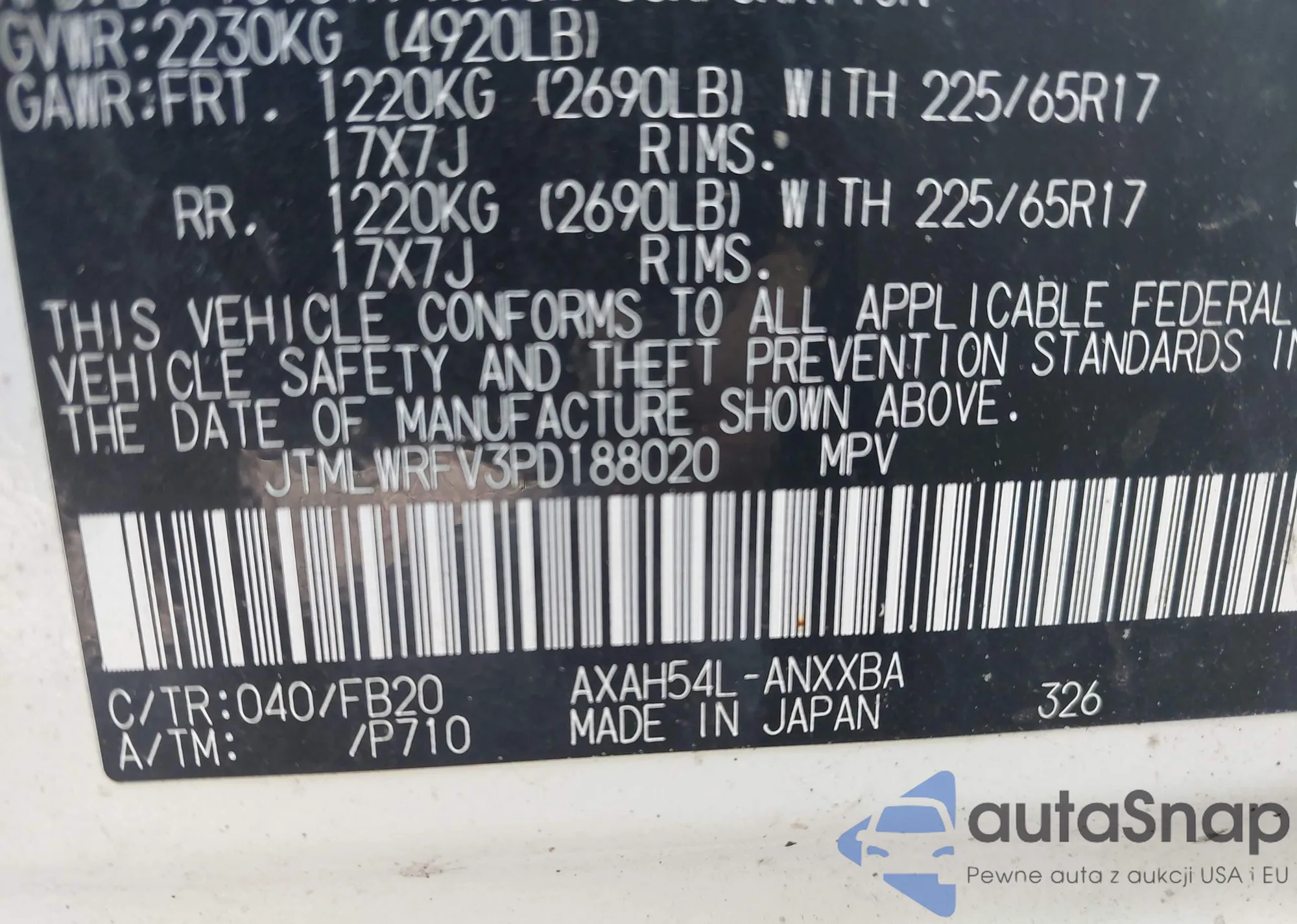 VIN: JTMLWRFV3PD188020