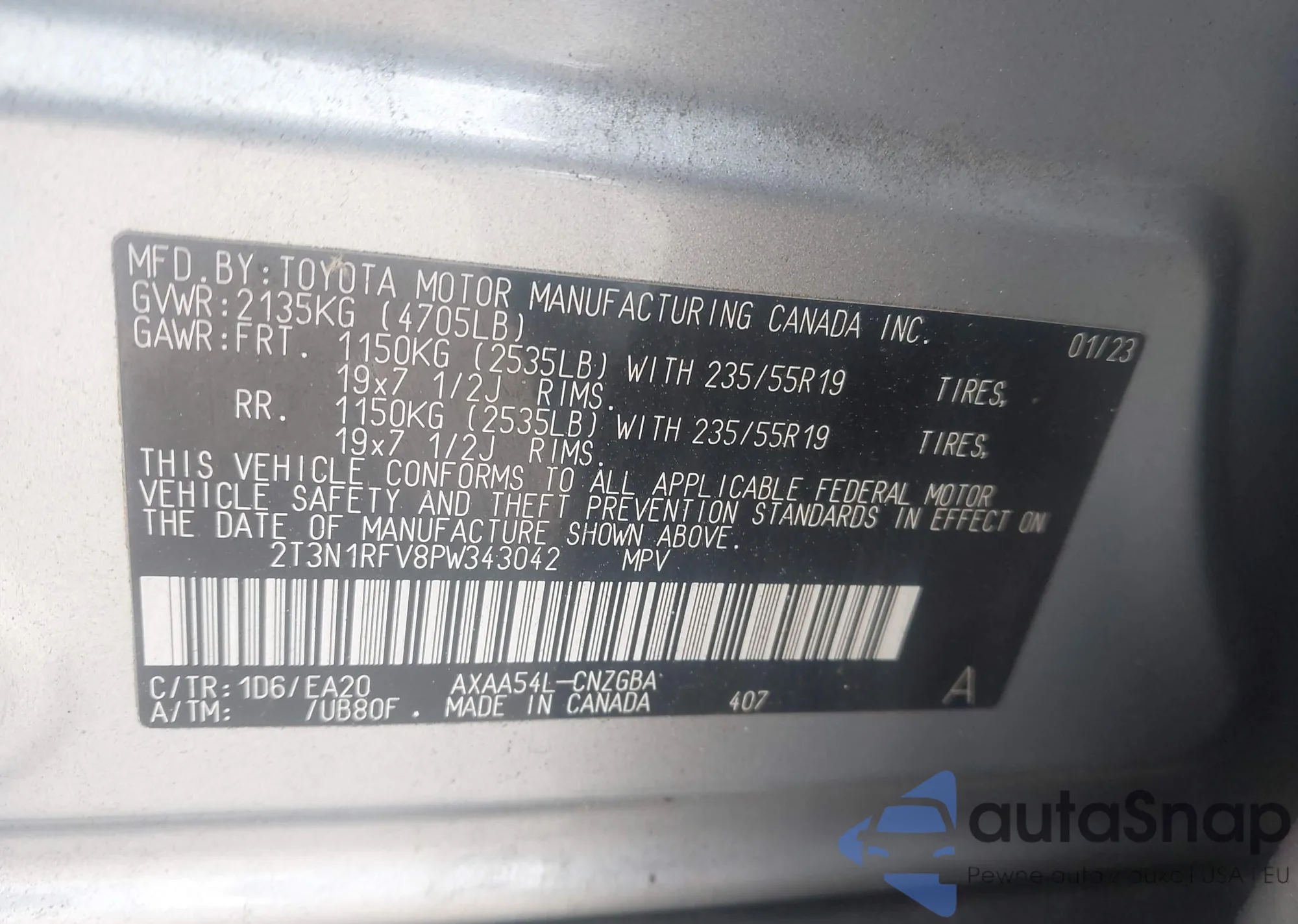 Автомобиль Toyota RAV 4 2023 (VIN 2T3N1RFV8PW343042) ранее не участвовал в торгах. Документы чистые, пробег соответствует или ниже среднего по рынку. Продаётся страховой компанией — рекомендуем покупку. Доставка в порт займет около 6–8 недель.
