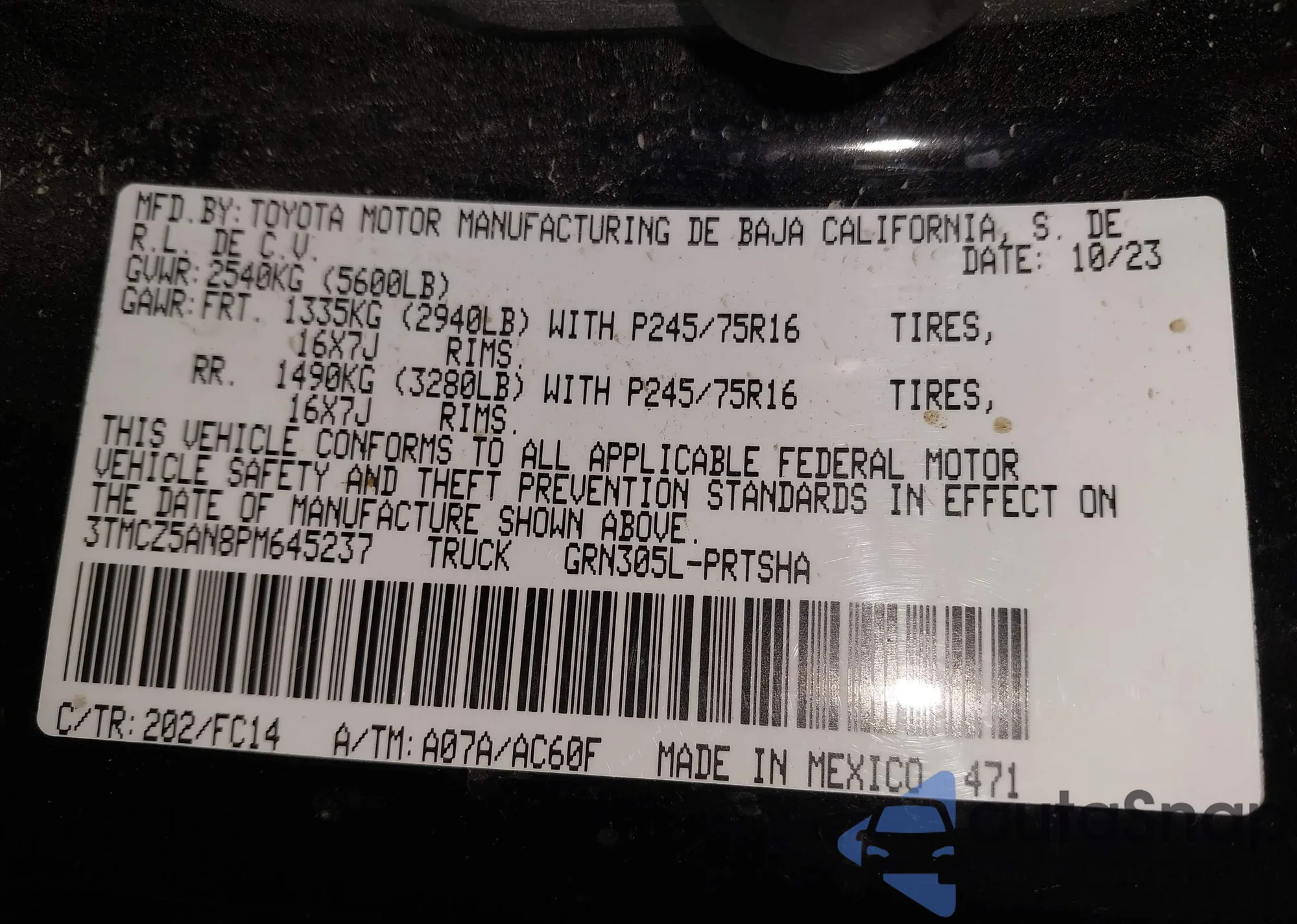 VIN: 3TMCZ5AN8PM645237