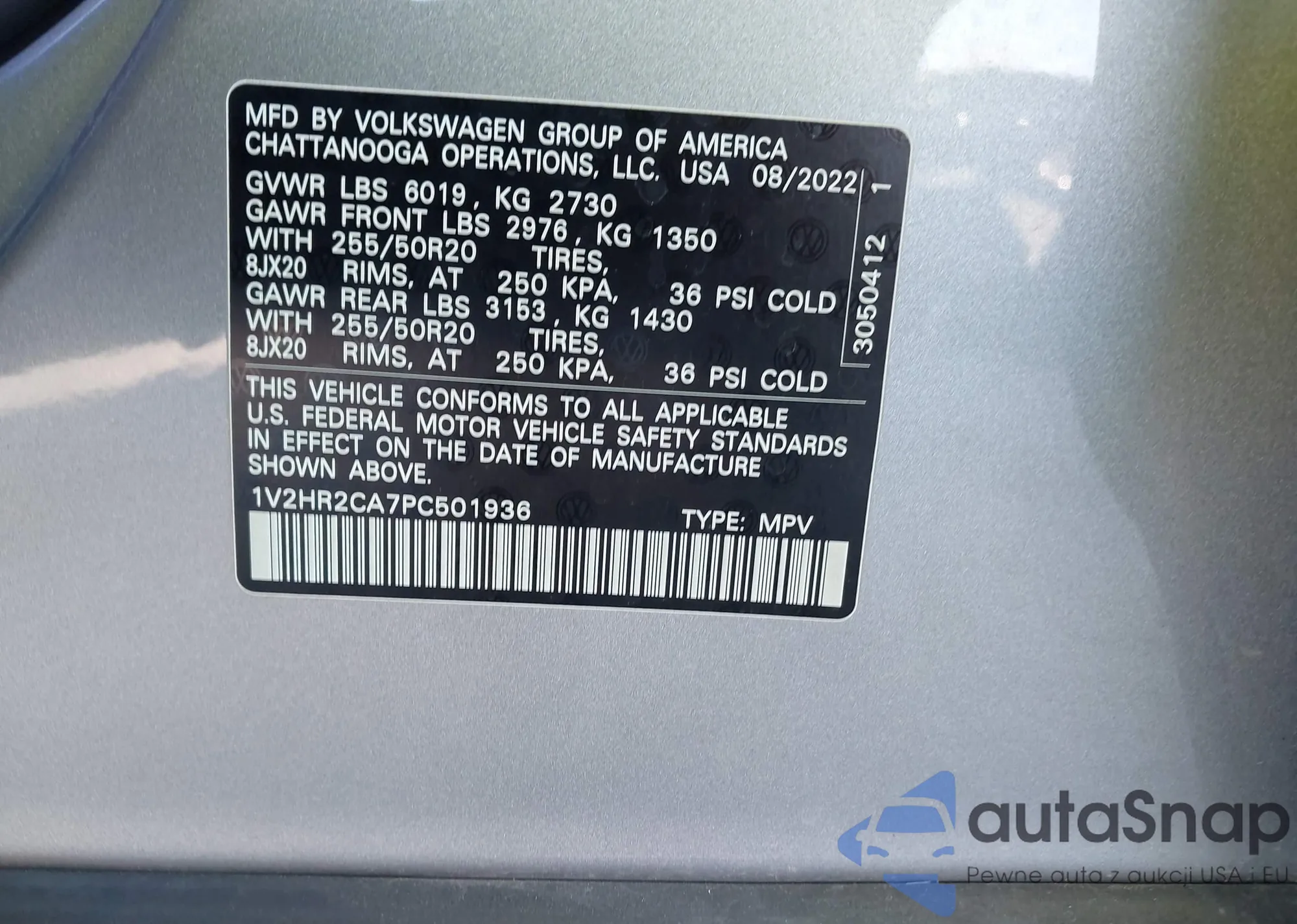 • VIN: 1V2HR2CA7PC501936