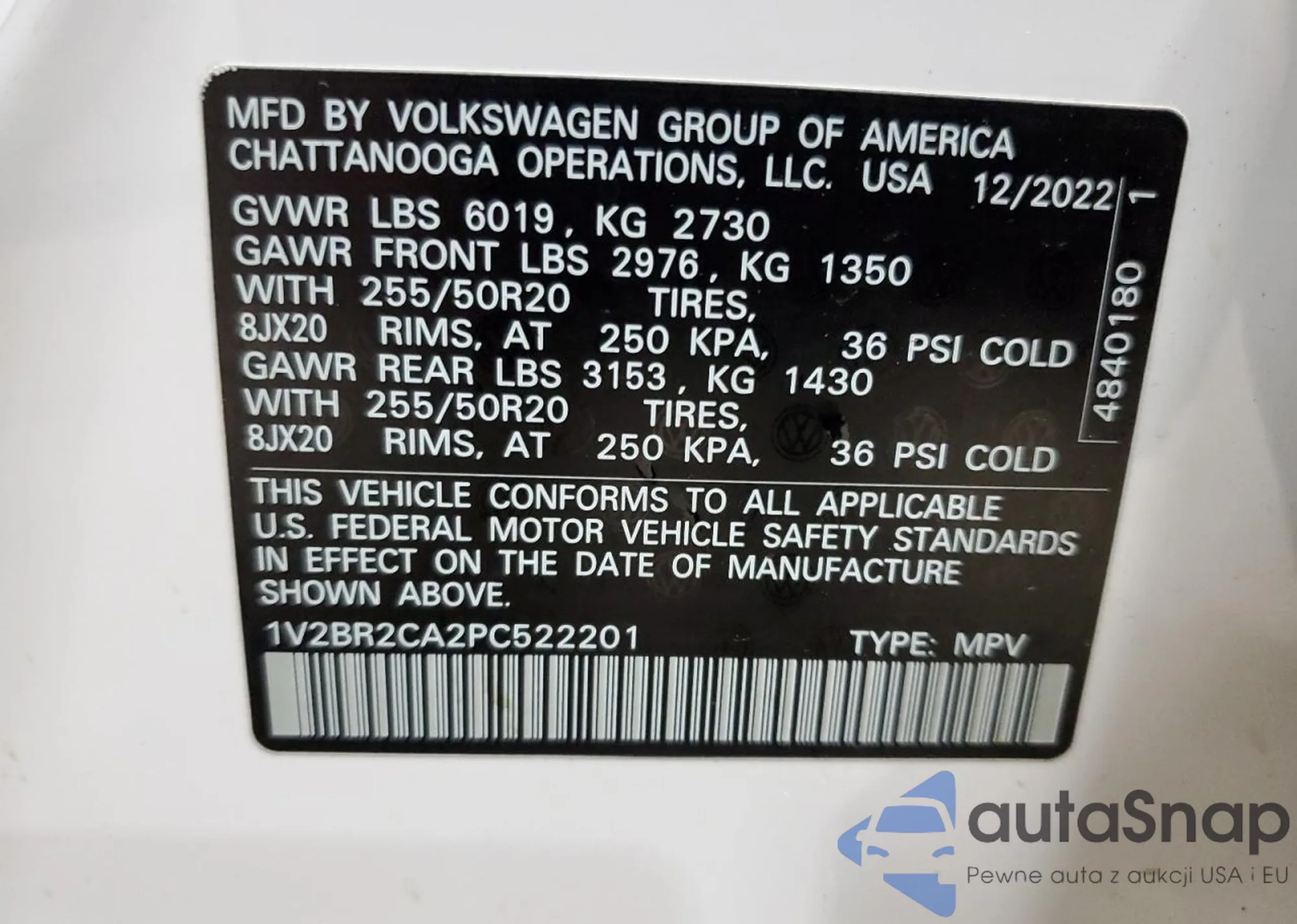 VIN: 1V2BR2CA2PC522201