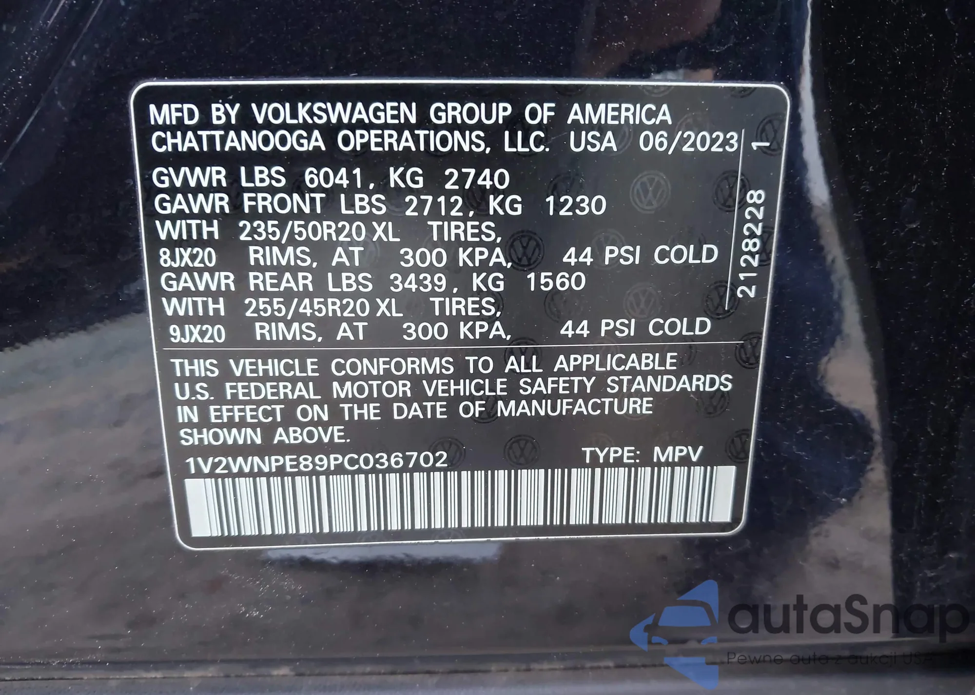 • VIN: 1V2WNPE89PC036702