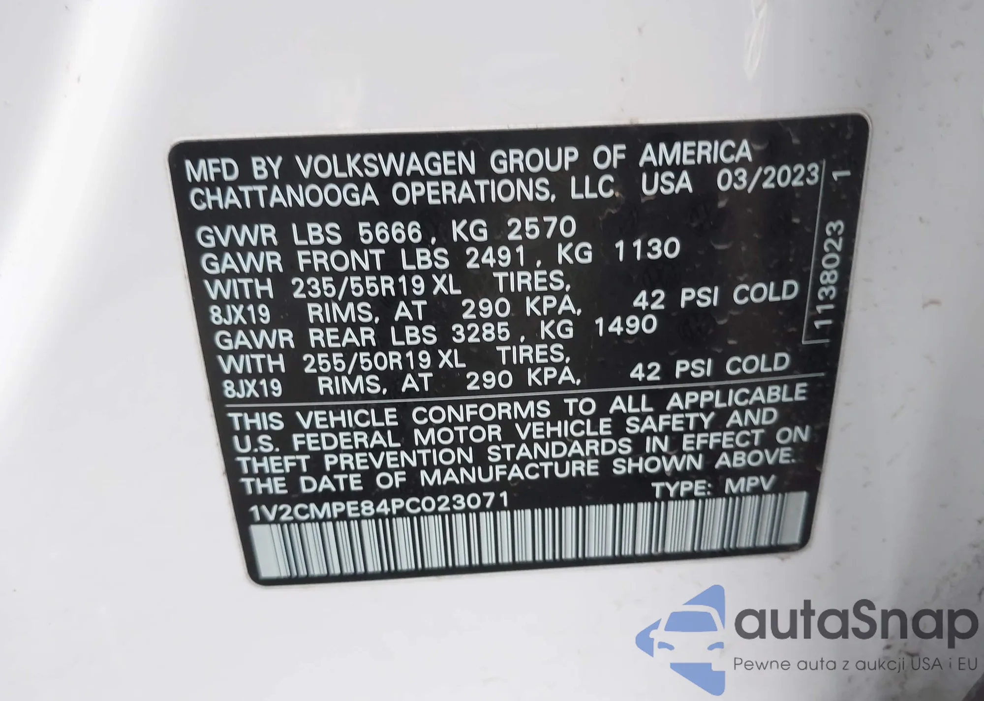 • VIN: 1V2CMPE84PC023071