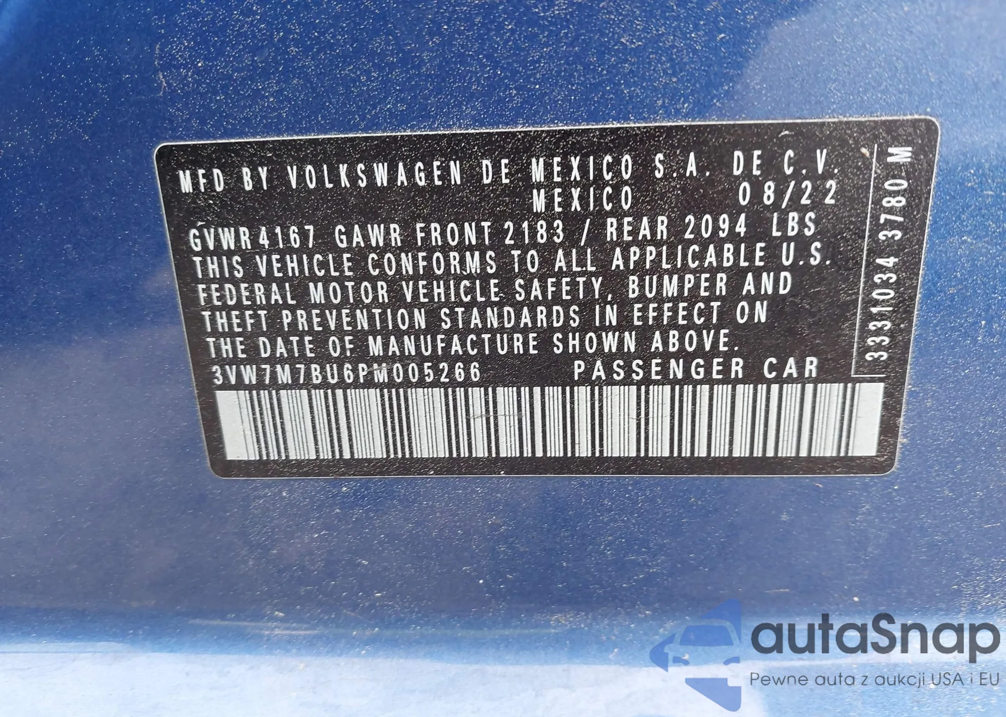 VIN: 3VW7M7BU6PM005266
