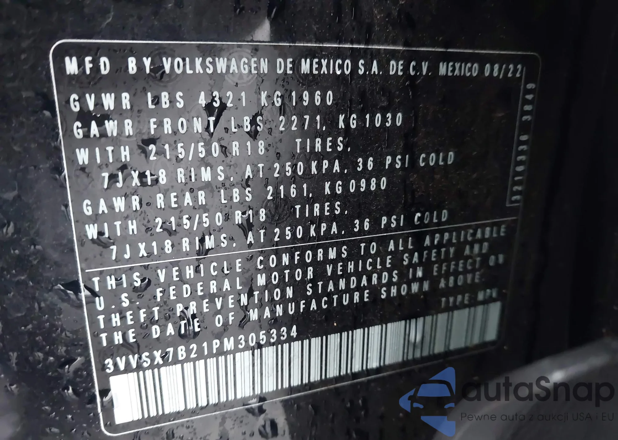 VIN: 3VVSX7B21PM305334