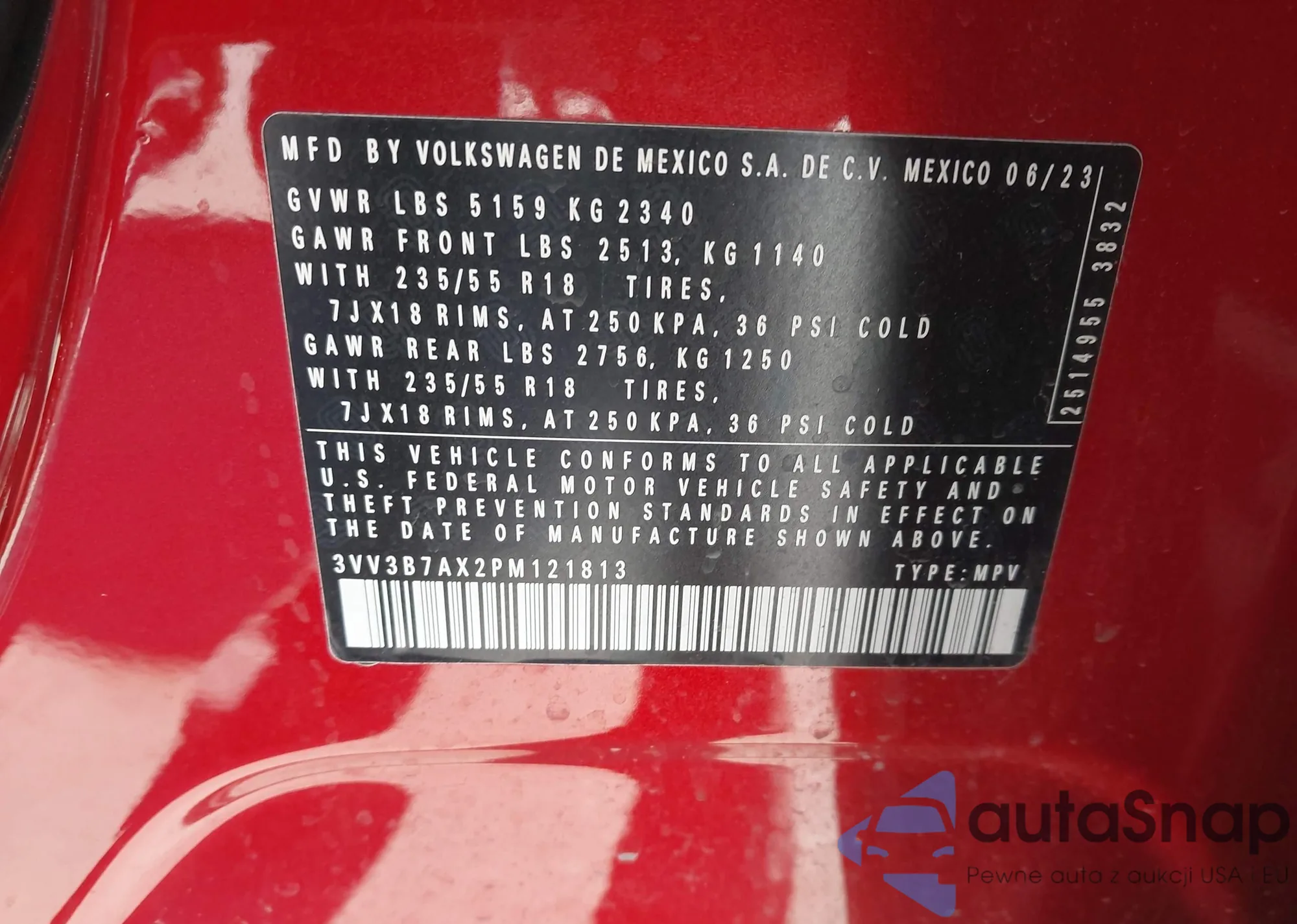 Автомобиль Volkswagen Tiguan 2023 (VIN 3VV3B7AX2PM121813) ранее не участвовал в торгах. Документы чистые, пробег соответствует или ниже среднего по рынку. Продаётся страховой компанией — рекомендуем покупку. Доставка в порт займет около 6–8 недель.