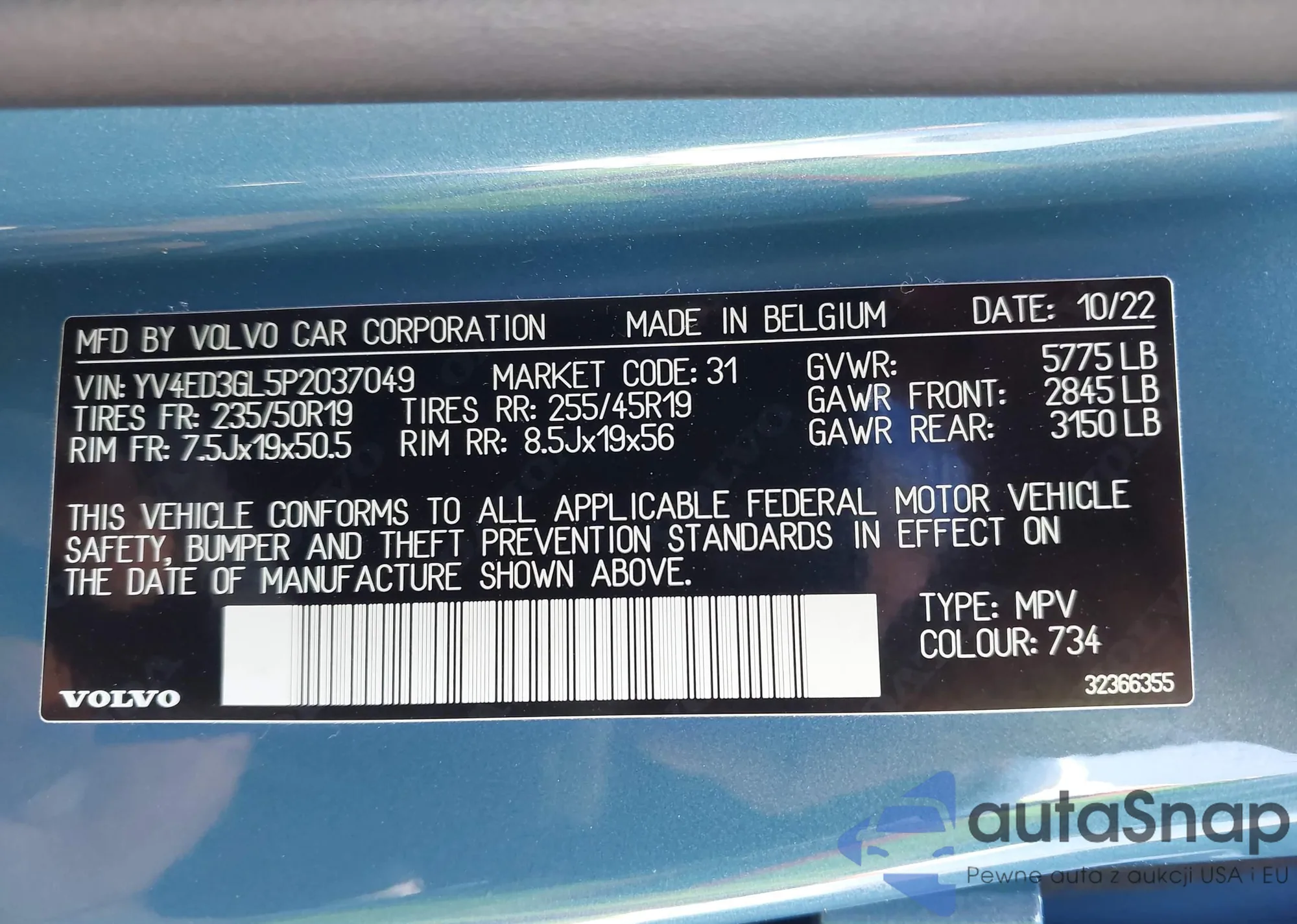 VIN: YV4ED3GL5P2037049