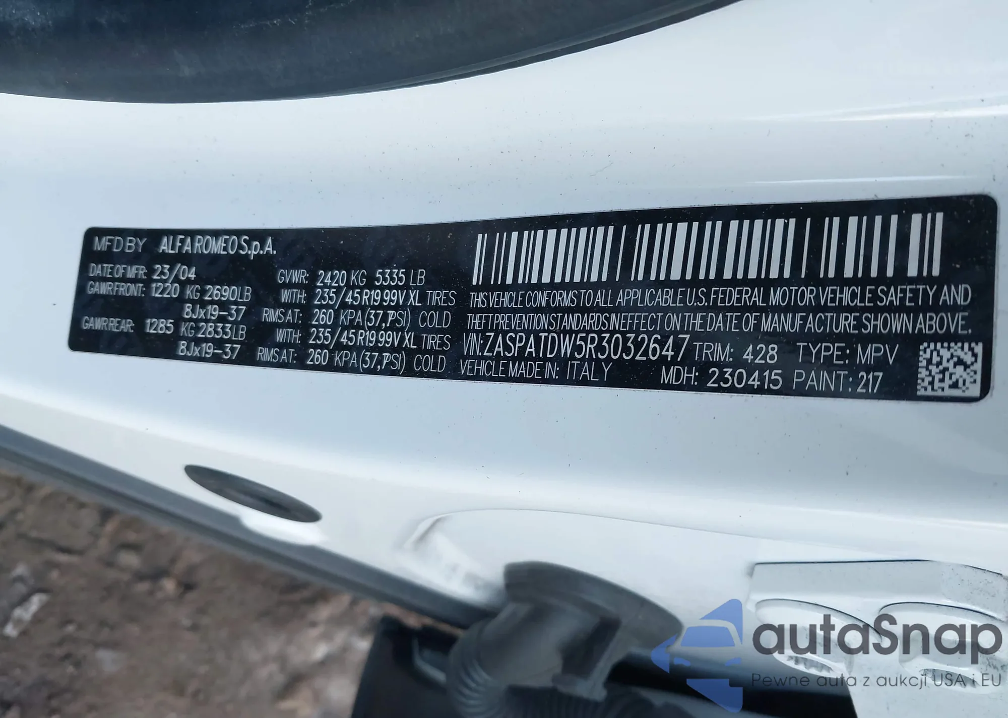 ZASPATDW5R3032647 IAAI