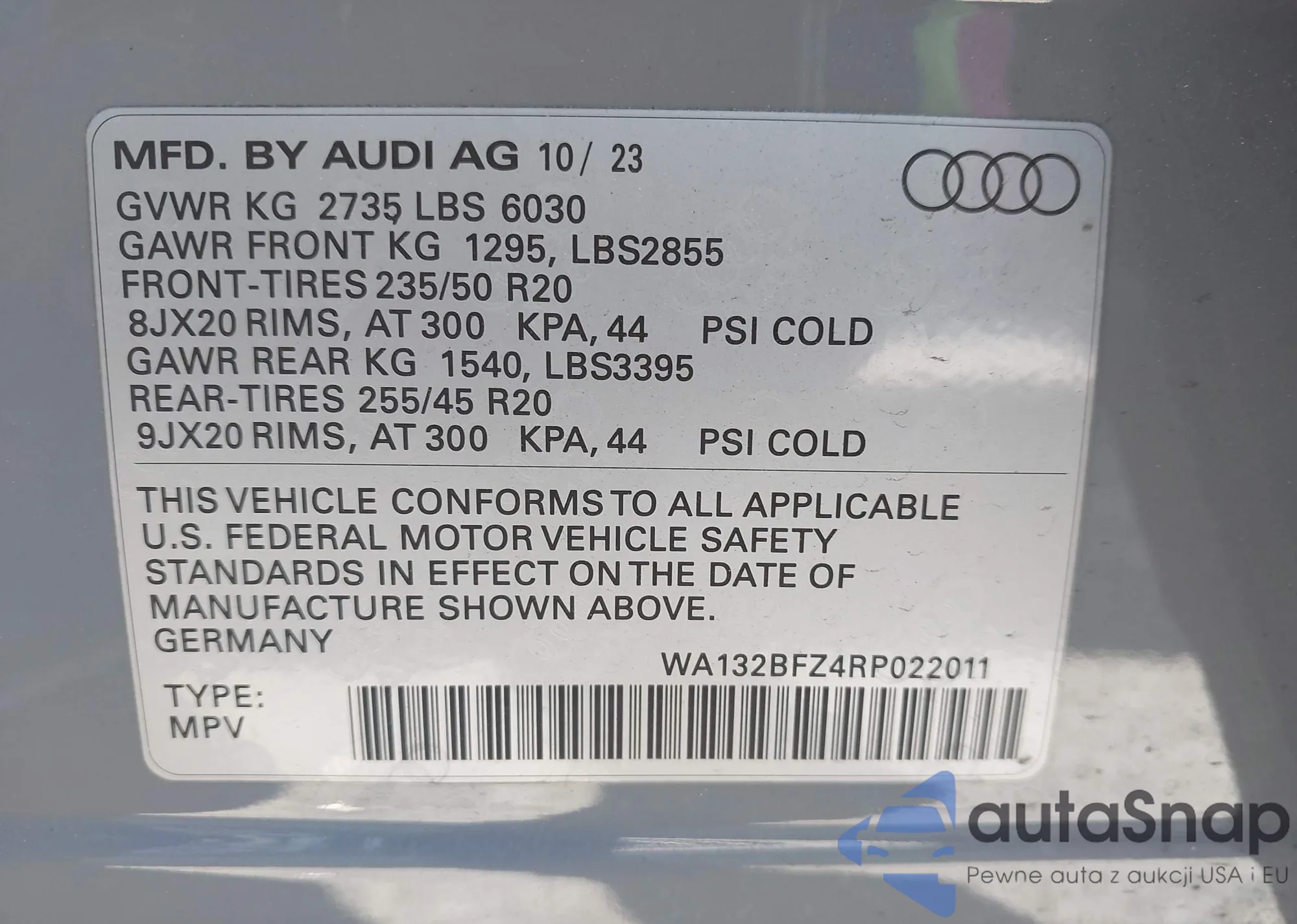 VIN: WA132BFZ4RP022011
