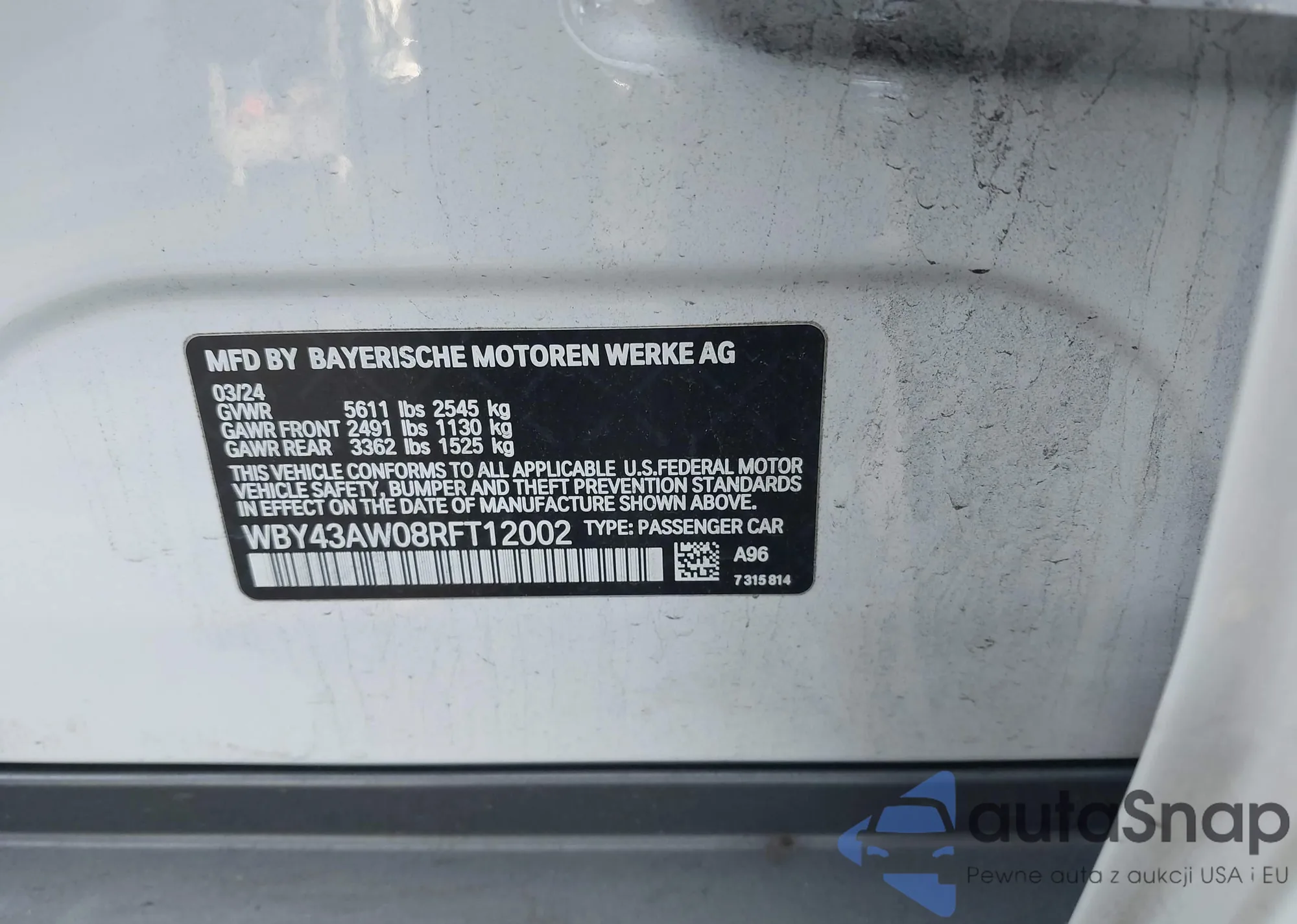 Автомобиль BMW i4 2024 (VIN WBY43AW08RFT12002) уже участвовал в торгах 1 раз(а) и/или продаётся непроверенным продавцом. Рекомендуем проверить отчет Carfax и подтвердить возможность регистрации перед покупкой.