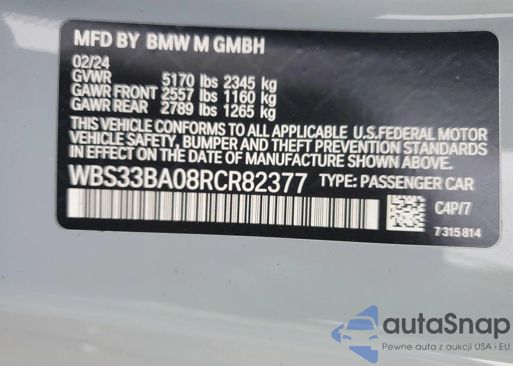 VIN: WBS33BA08RCR82377