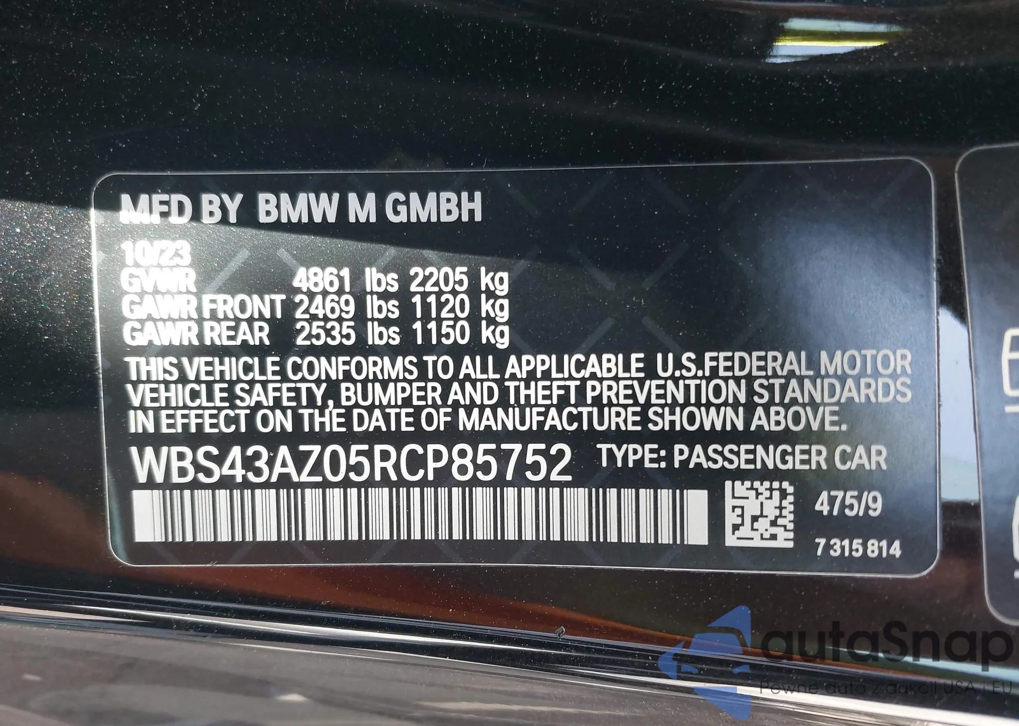 • VIN: WBS43AZ05RCP85752