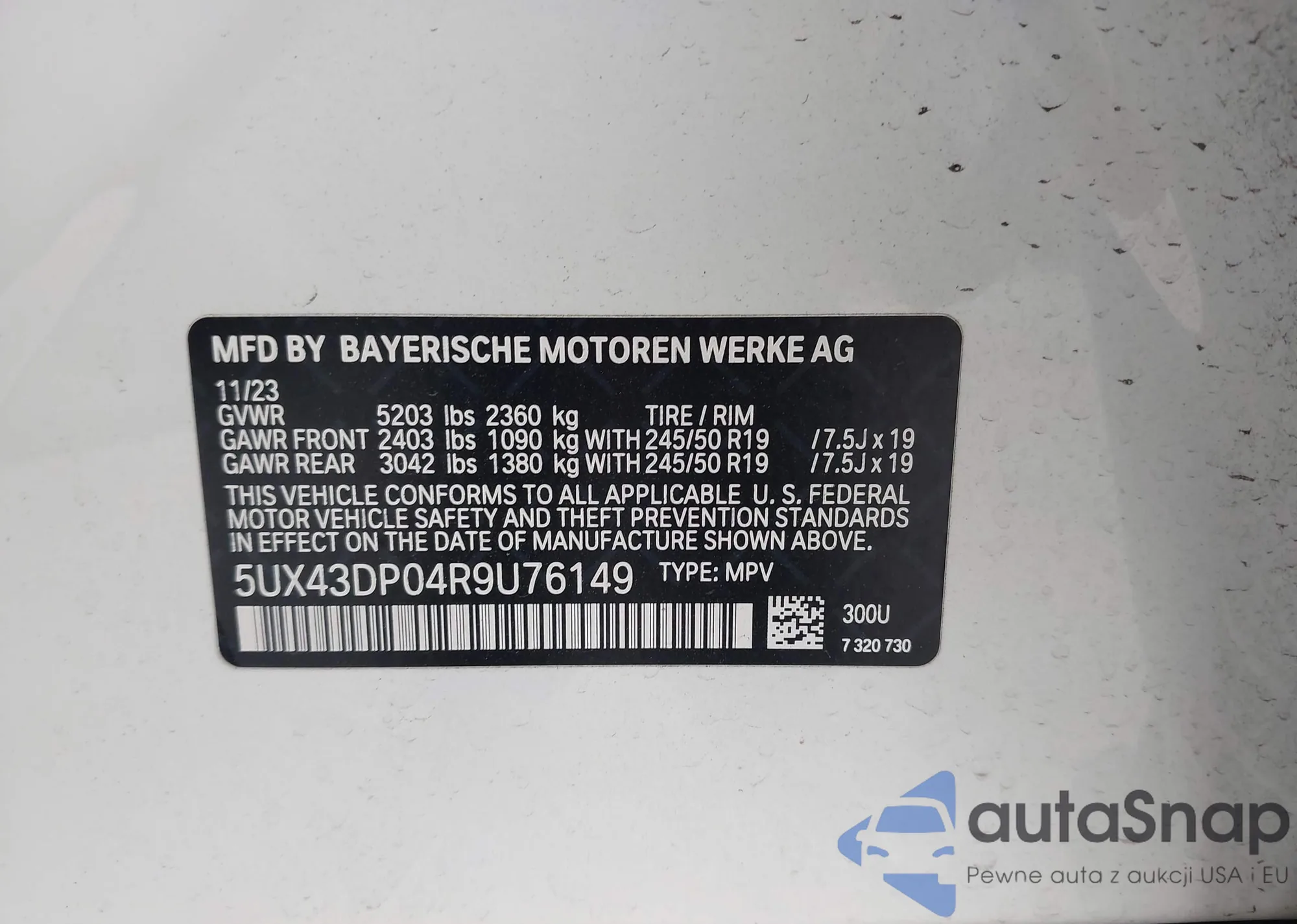 VIN: 5UX43DP04R9U76149