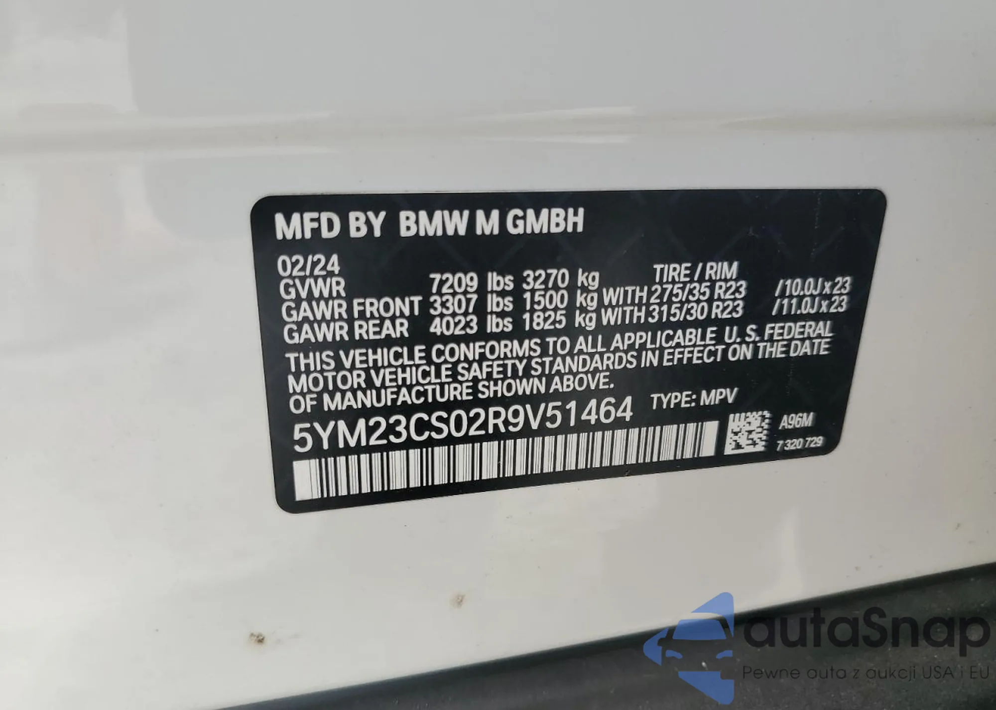 Автомобиль BMW XM 2024 (VIN 5YM33CS02R9V51464) продаётся непроверенным продавцом. Рекомендуем проверить отчет Carfax и подтвердить возможность регистрации перед покупкой.