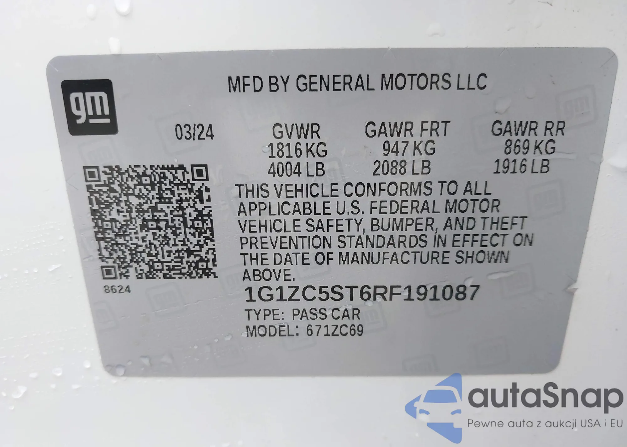 Автомобиль Chevrolet Malibu 2024 (VIN 1G1ZC5ST6RF191087) ранее не участвовал в торгах. Документы чистые, пробег соответствует или ниже среднего по рынку. Продаётся страховой компанией — рекомендуем покупку. Доставка в порт займет около 6–8 недель.