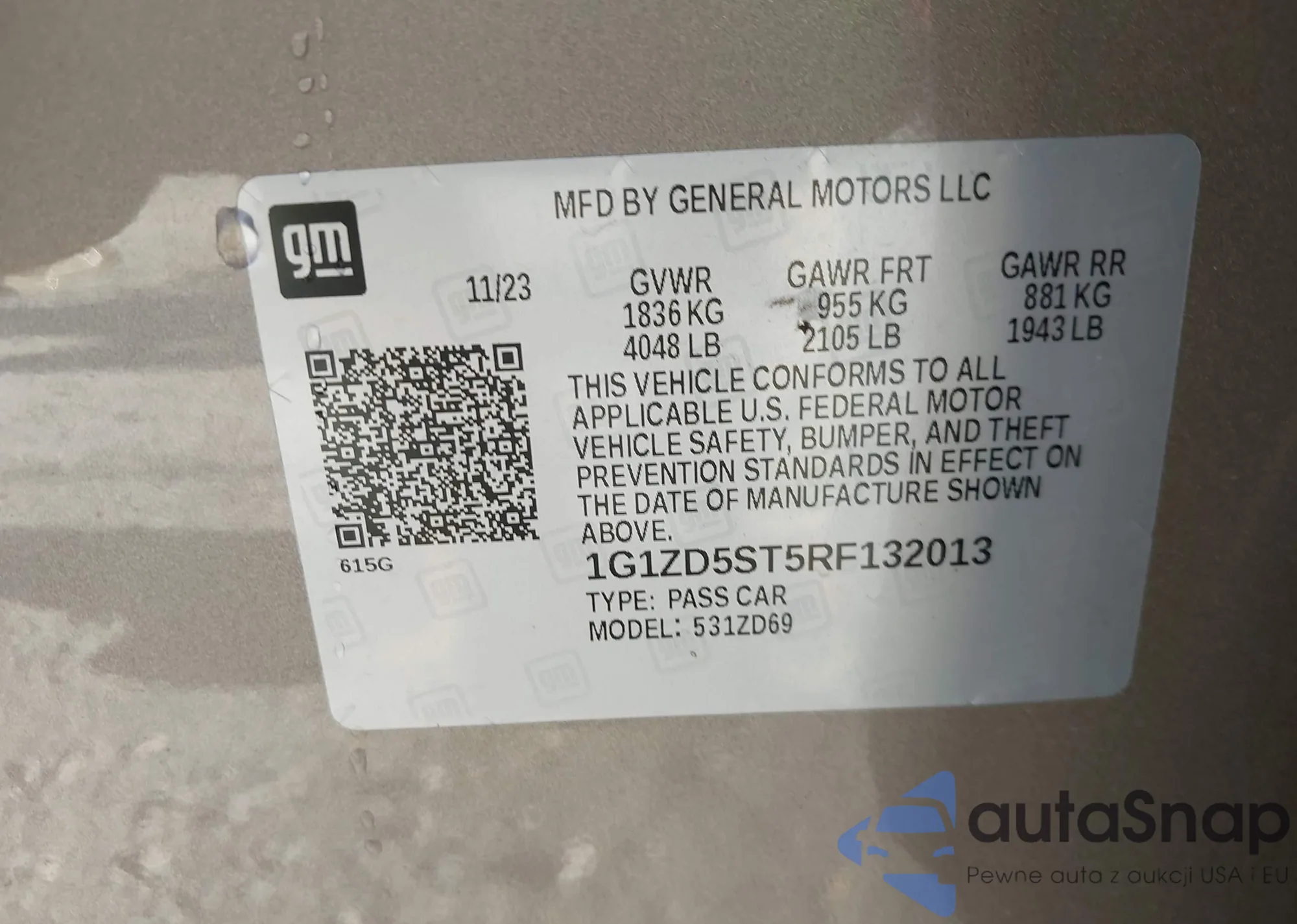 • VIN: 1G1ZD5ST5RF132013