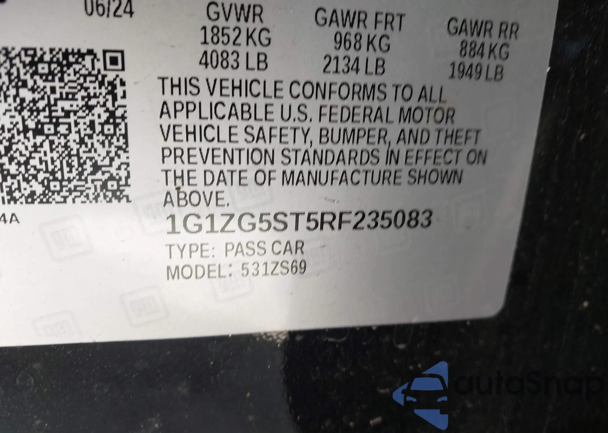 VIN: 1G1ZG5ST5RF235083