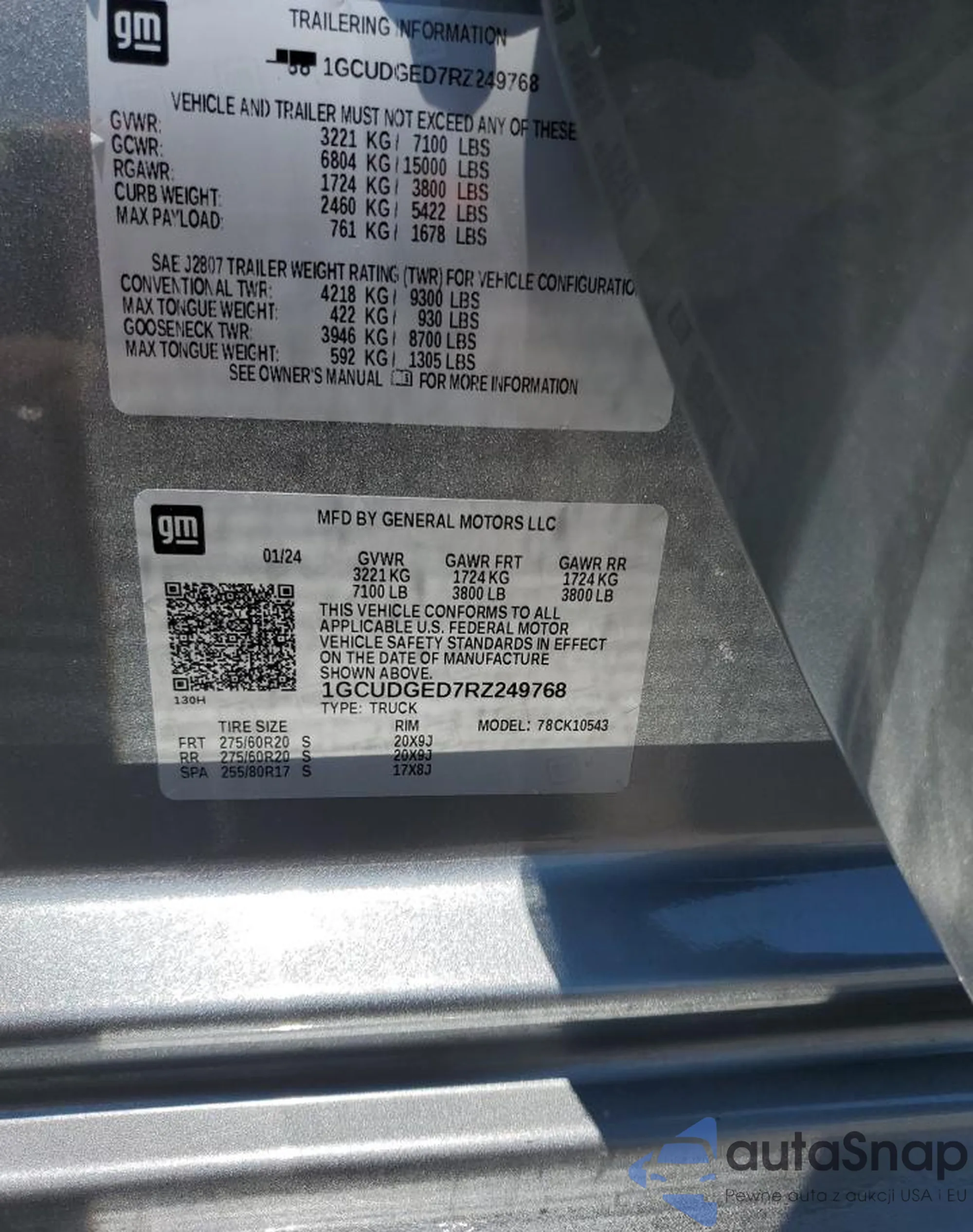 • VIN: 1GCUDGED7RZ249768