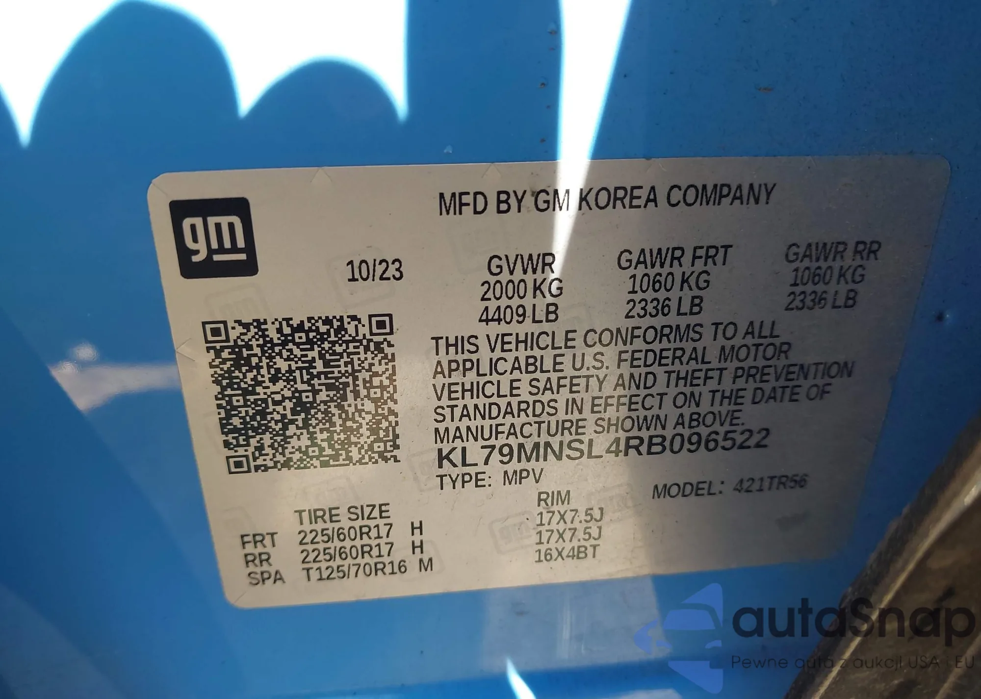 Автомобиль Chevrolet TrailBlazer 2024 (VIN KL79MNSL4RB096522) ранее не участвовал в торгах. Документы чистые, пробег соответствует или ниже среднего по рынку. Продаётся страховой компанией — рекомендуем покупку. Доставка в порт займет около 6–8 недель.