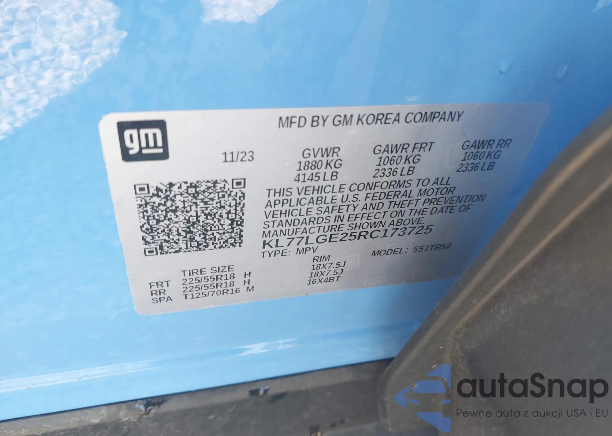 VIN: KL77LGE25RC173725