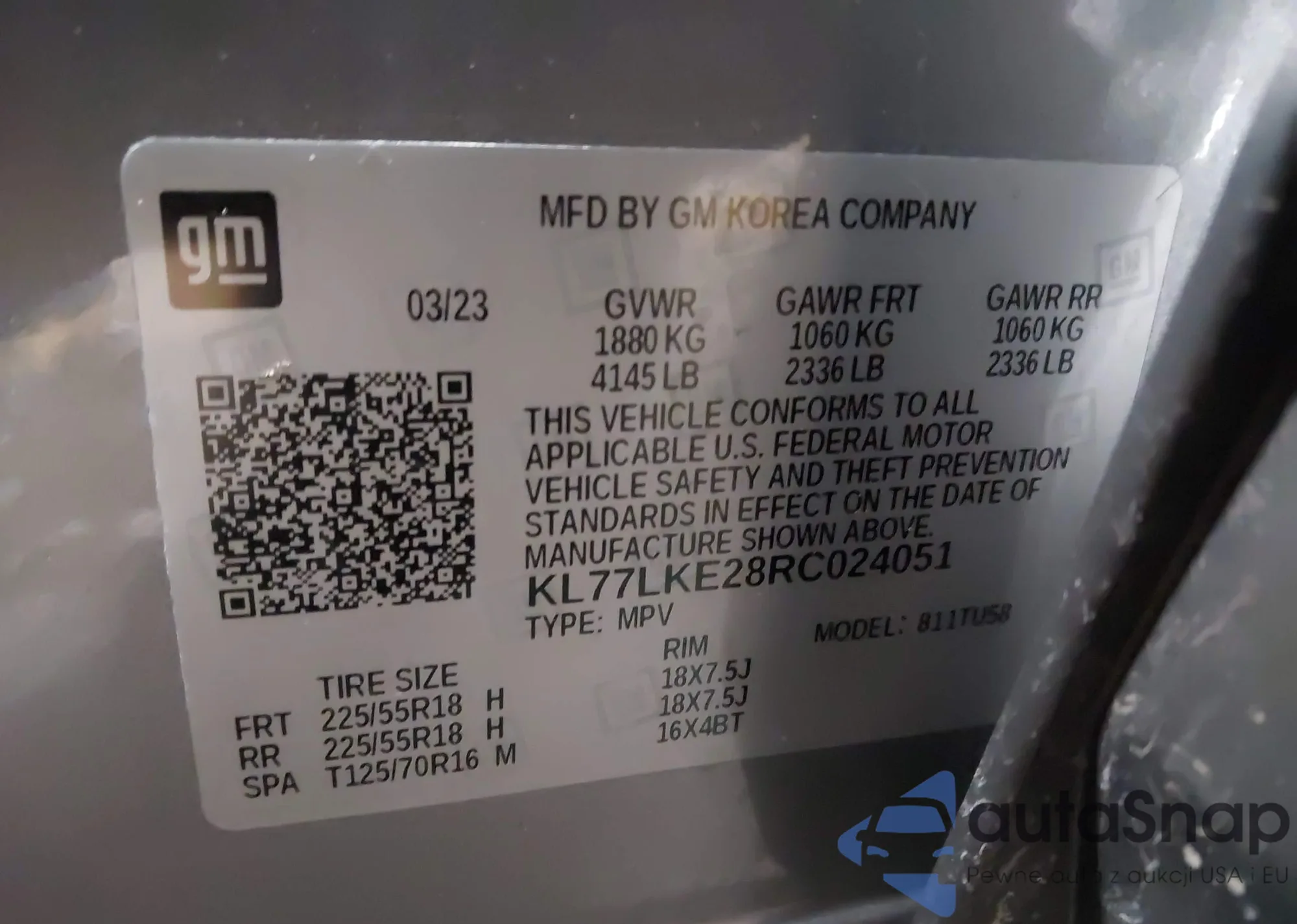 Автомобиль Chevrolet Trax 2024 (VIN KL77LKE28RC024051) ранее не участвовал в торгах. Документы чистые, пробег соответствует или ниже среднего по рынку. Продаётся страховой компанией — рекомендуем покупку. Доставка в порт займет около 6–8 недель.