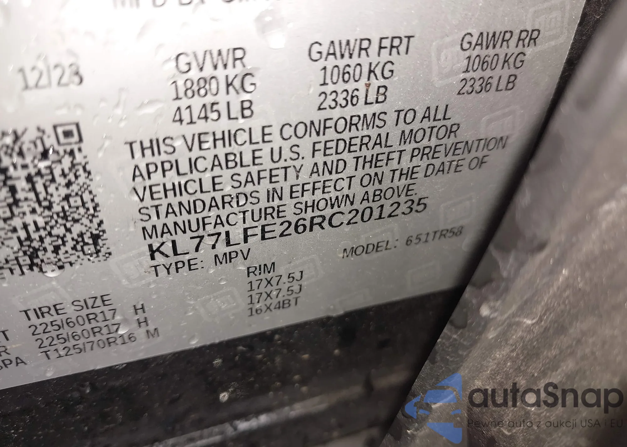Автомобиль Chevrolet Trax 2024 (VIN KL77LFE26RC201235) ранее не участвовал в торгах. Документы чистые, пробег соответствует или ниже среднего по рынку. Продаётся страховой компанией — рекомендуем покупку. Доставка в порт займет около 6–8 недель.