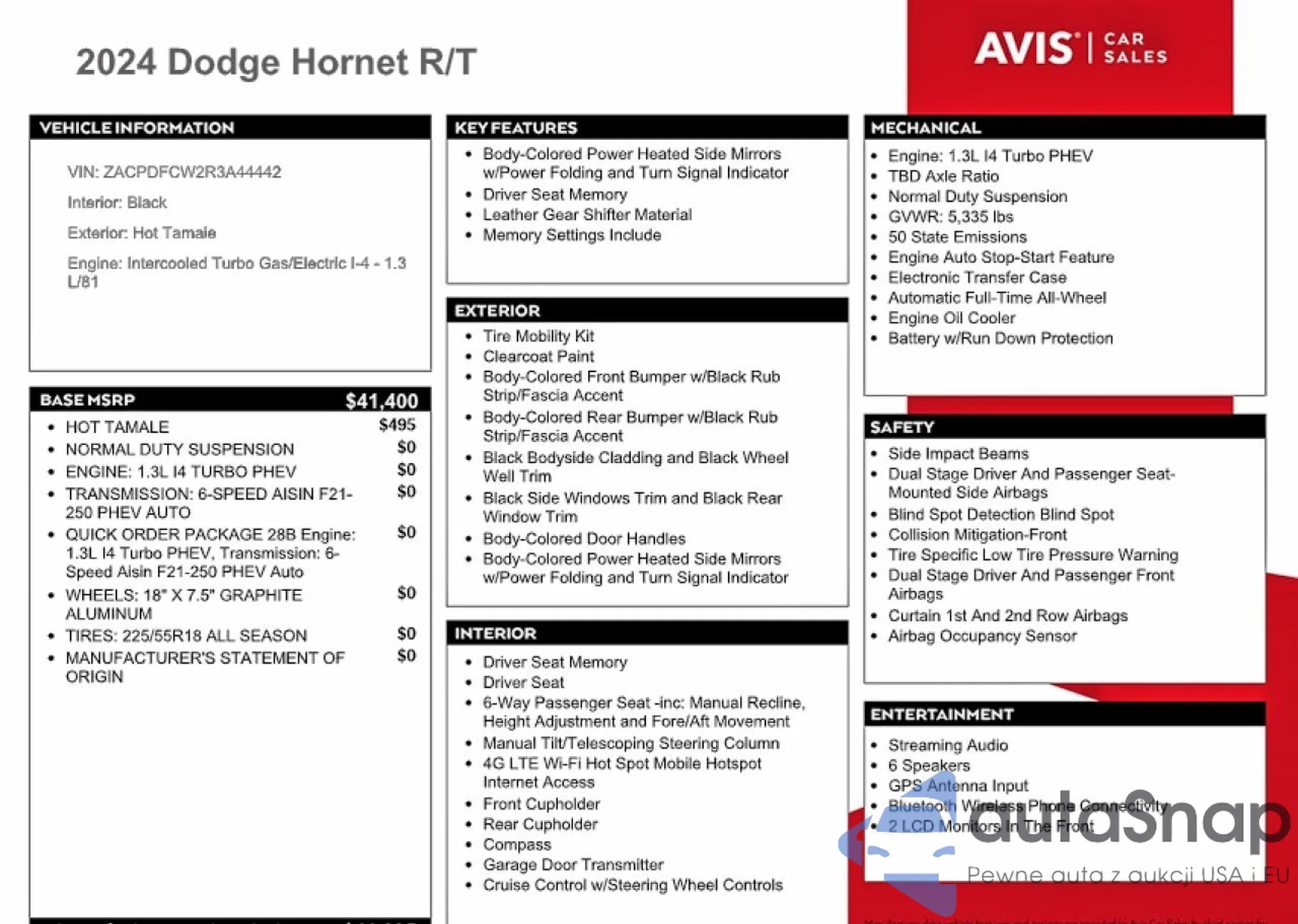 Dodge Hornet 2024 – История автомобиля (продан на COPART)