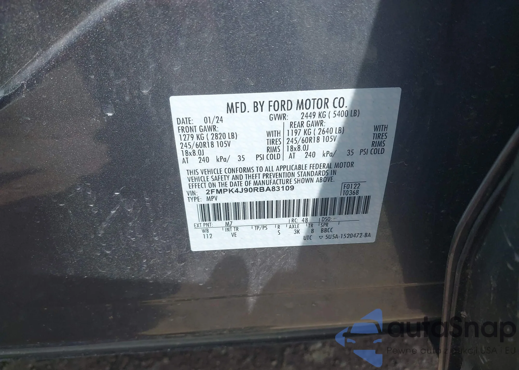 VIN: 2FMPK4J90RBA83109