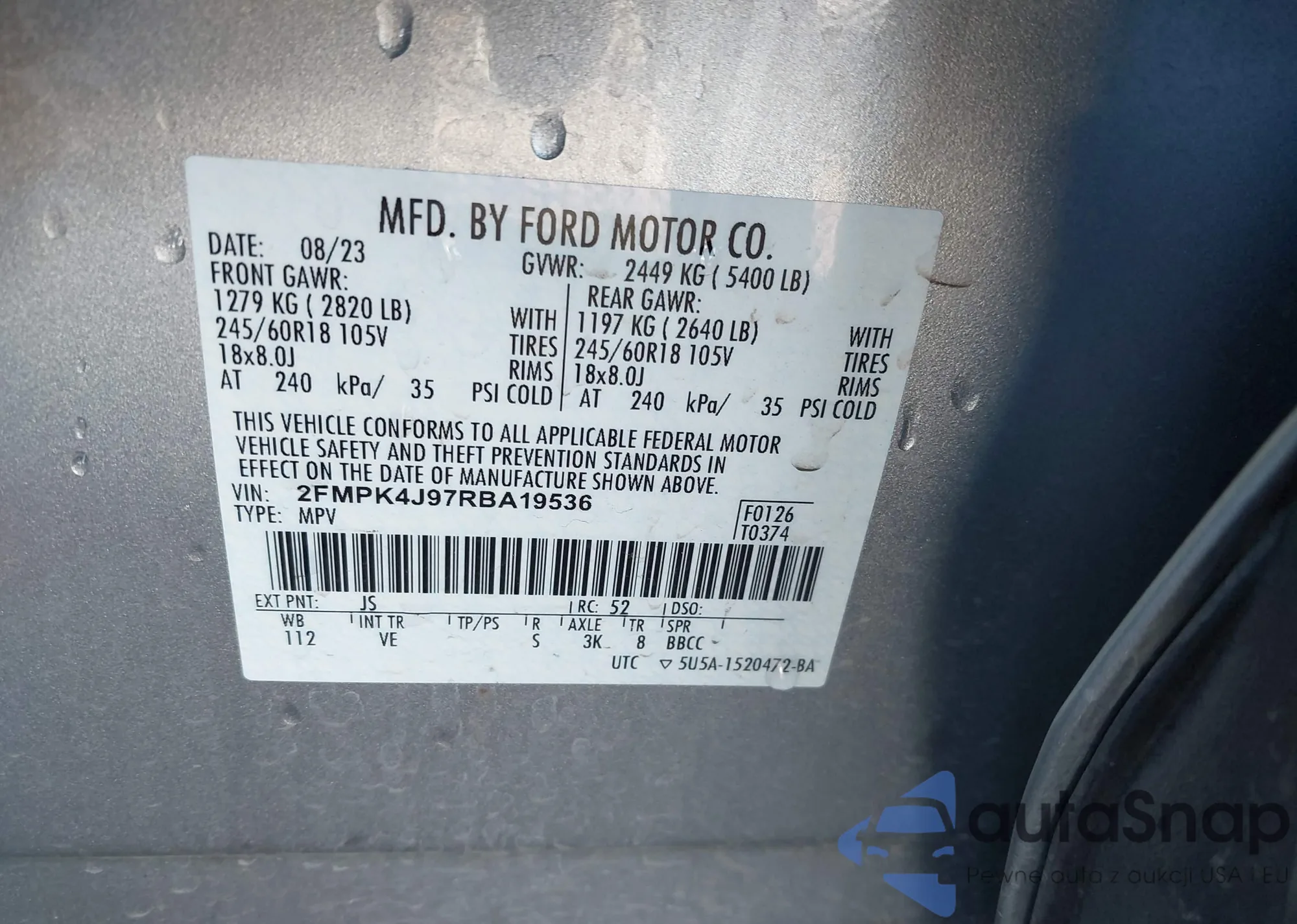 VIN: 2FMPK4J97RBA19536