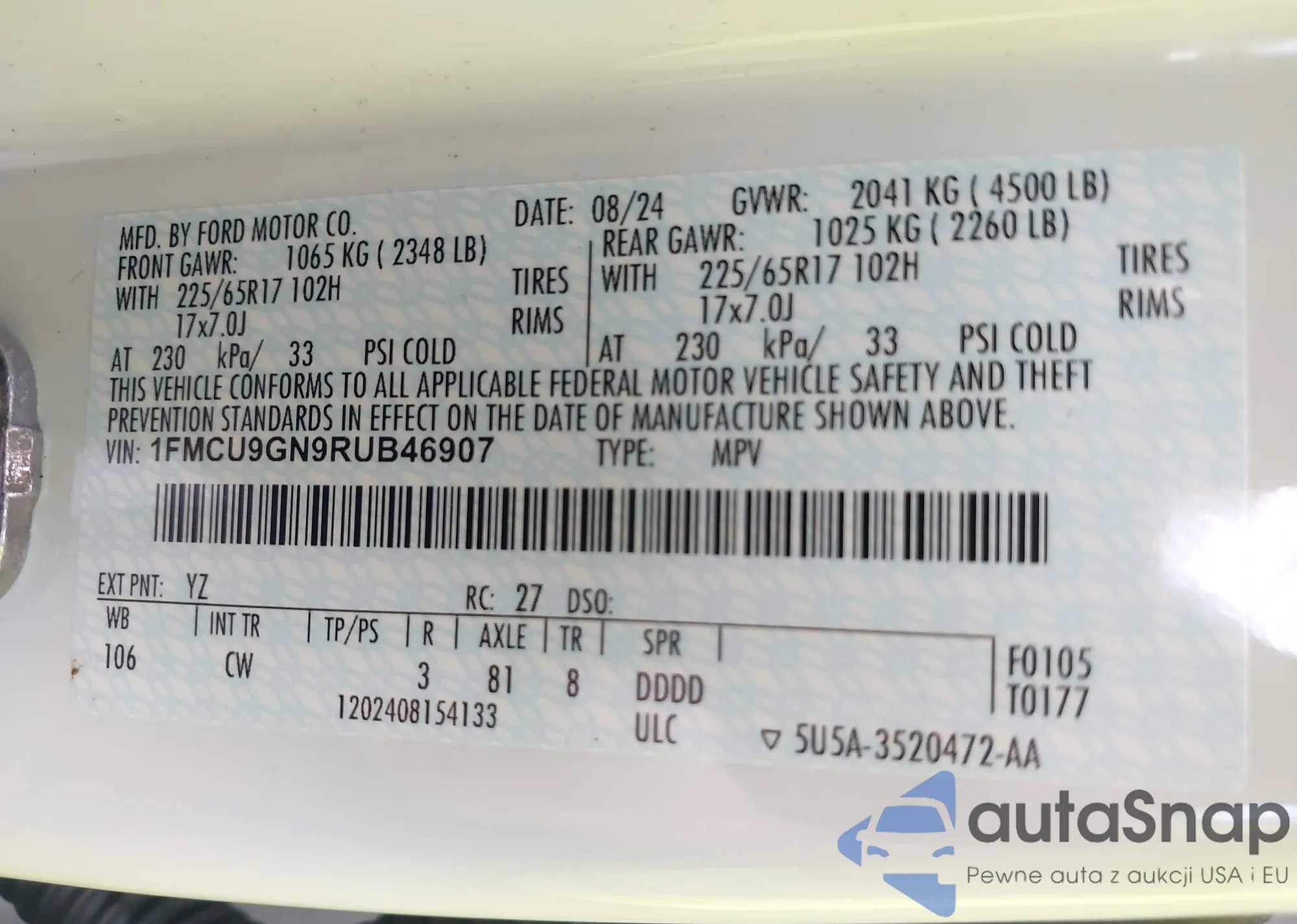 VIN: 1FMCU9GN9RUB46907