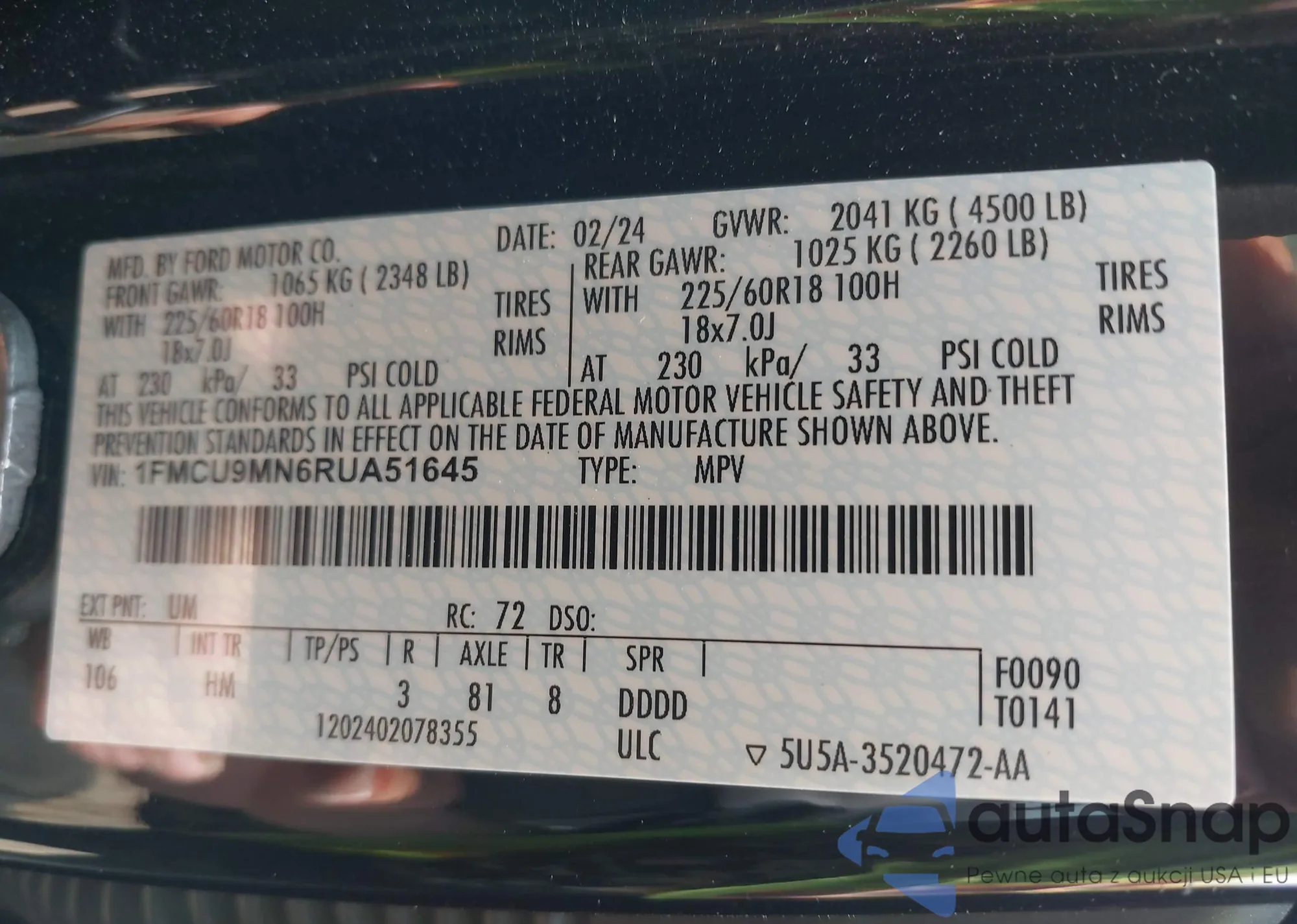 VIN: 1FMCU9MN6RUA51645