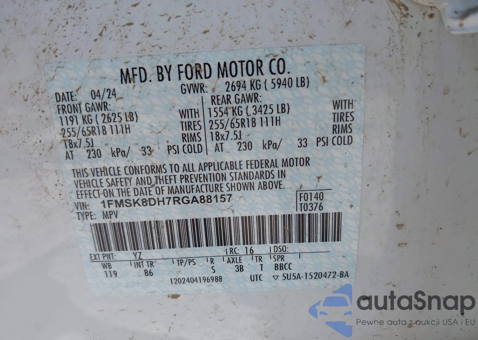 VIN: 1FMSK8DH7RGA88157