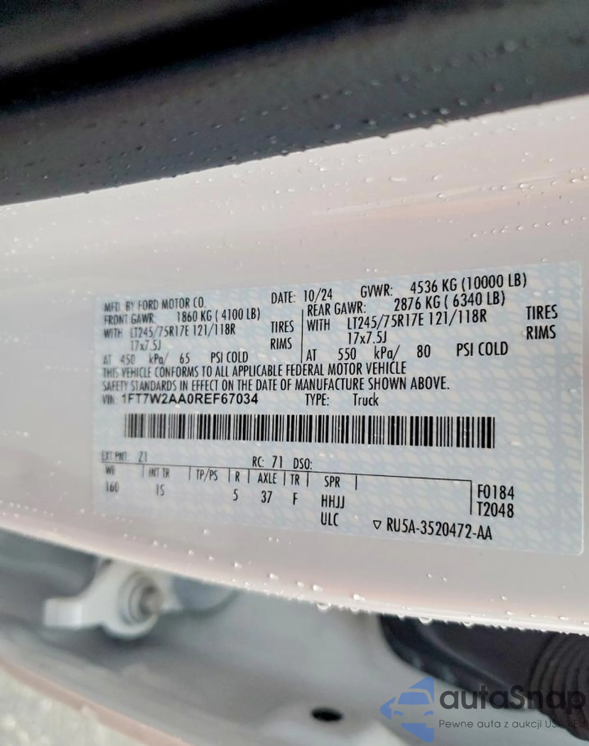Автомобиль Ford F250 2024 (VIN 1FT7W2AA0REF67034) уже участвовал в торгах 1 раз(а) и/или продаётся непроверенным продавцом. Рекомендуем проверить отчет Carfax и подтвердить возможность регистрации перед покупкой.
