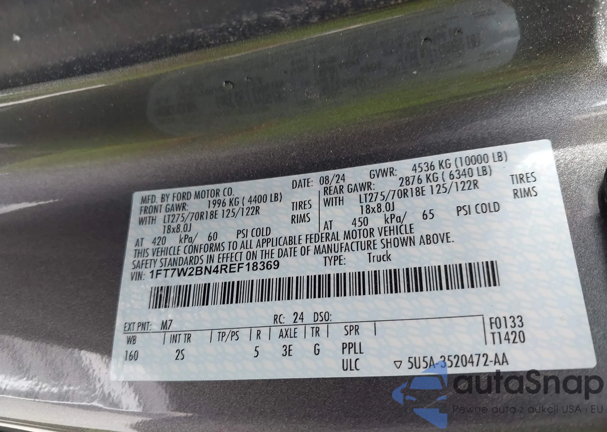Автомобиль Ford F250 2024 (VIN 1FT7W2BN4REF18369) ранее не участвовал в торгах. Документы чистые, пробег соответствует или ниже среднего по рынку. Продаётся страховой компанией — рекомендуем покупку. Доставка в порт займет около 6–8 недель.
