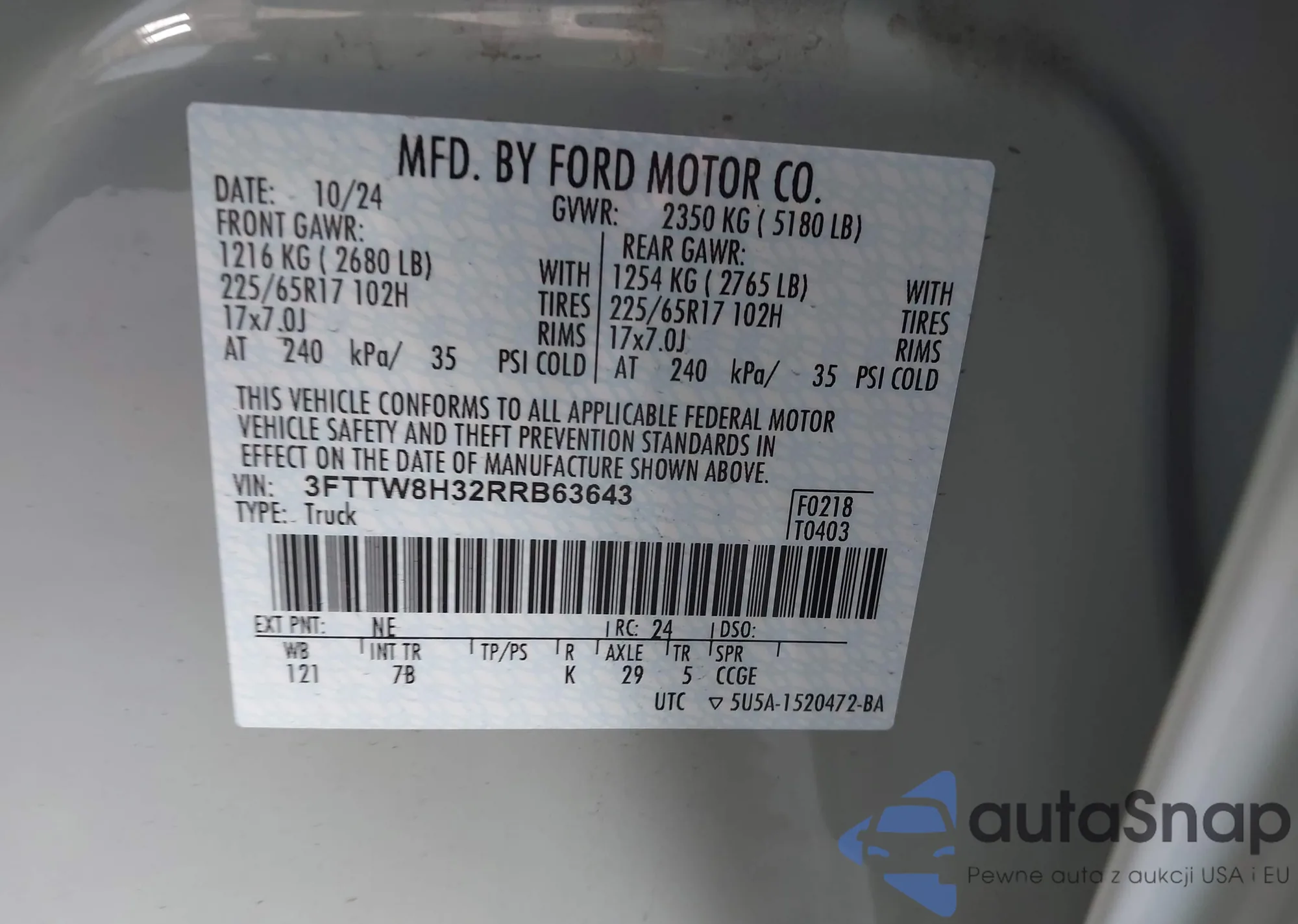 • VIN: 3FTTW8H32RRB63643