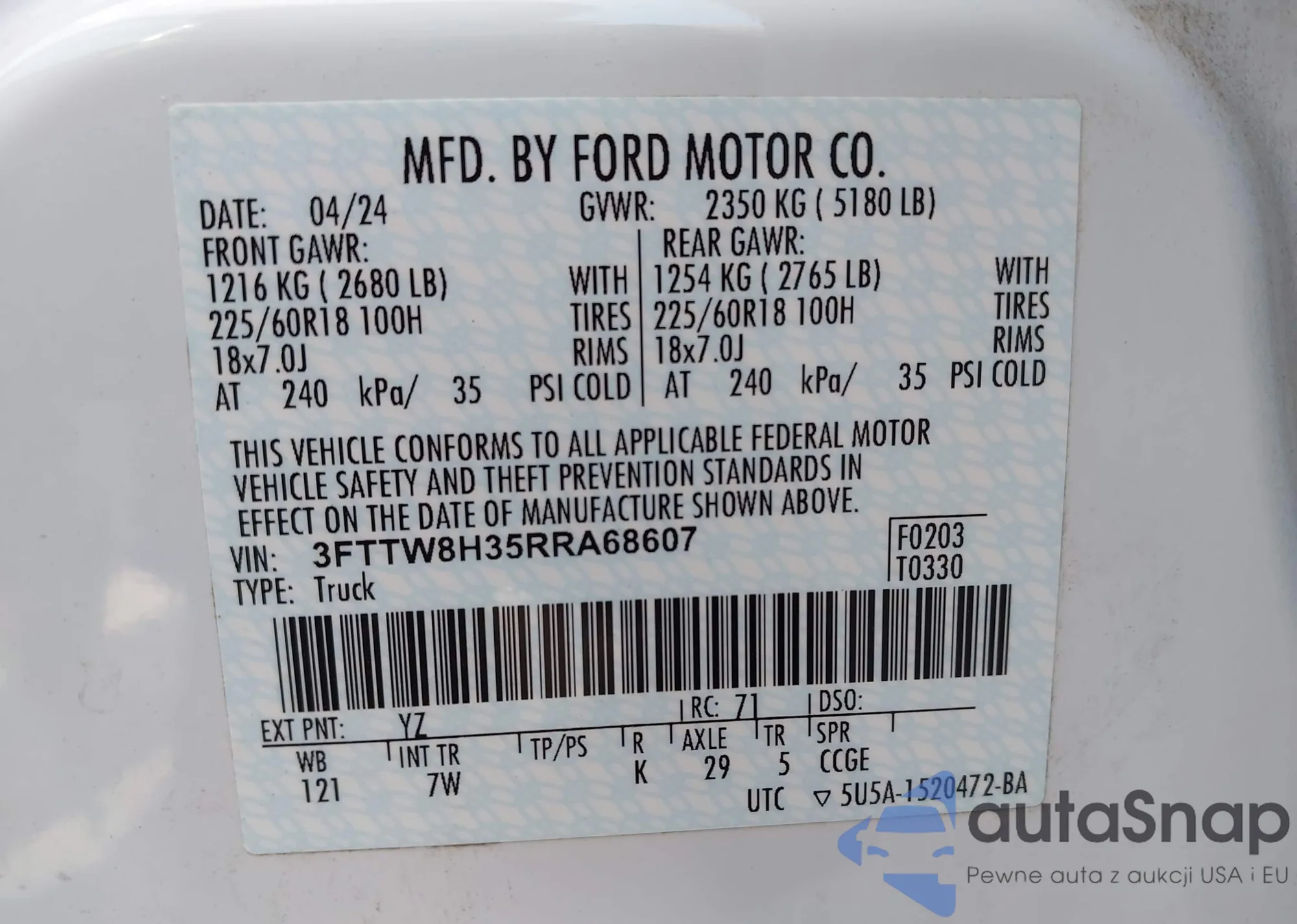 • VIN: 3FTTW8H35RRA68607