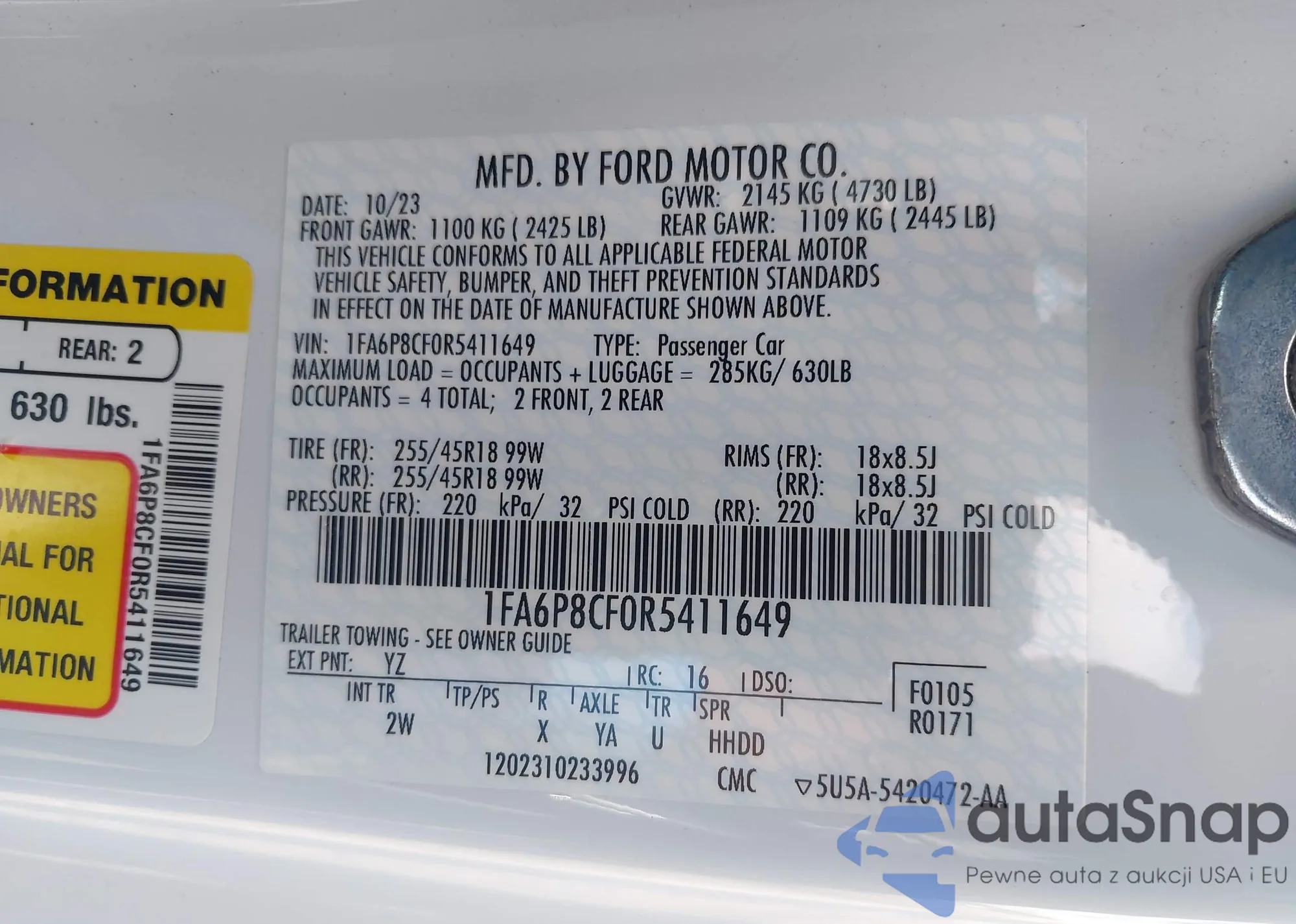 VIN: 1FA6P8CF0R5411649