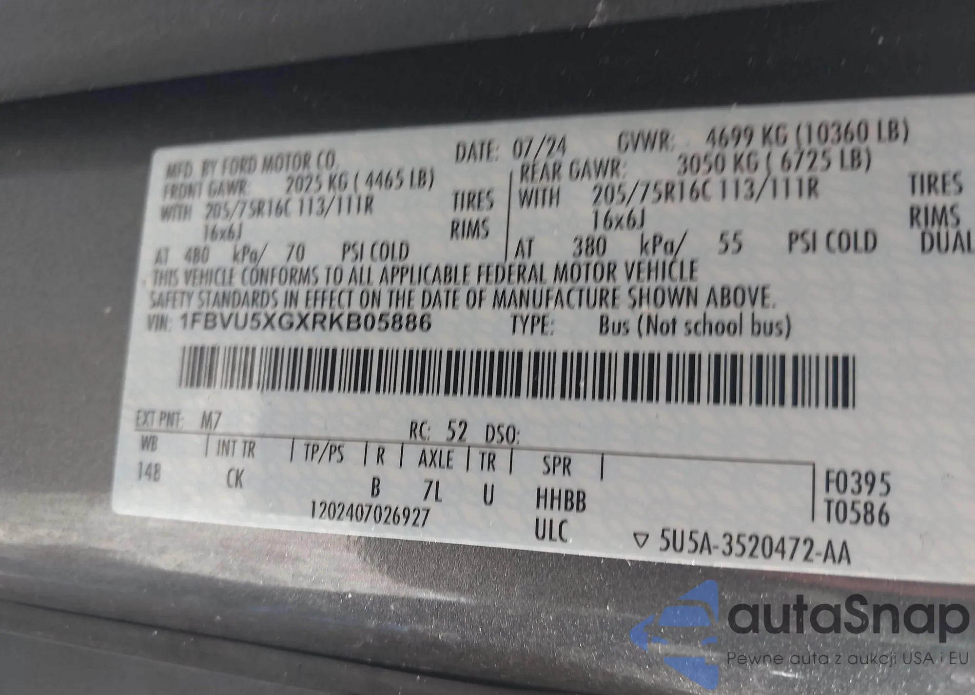 VIN: 1FBVU5XGXRKB05886