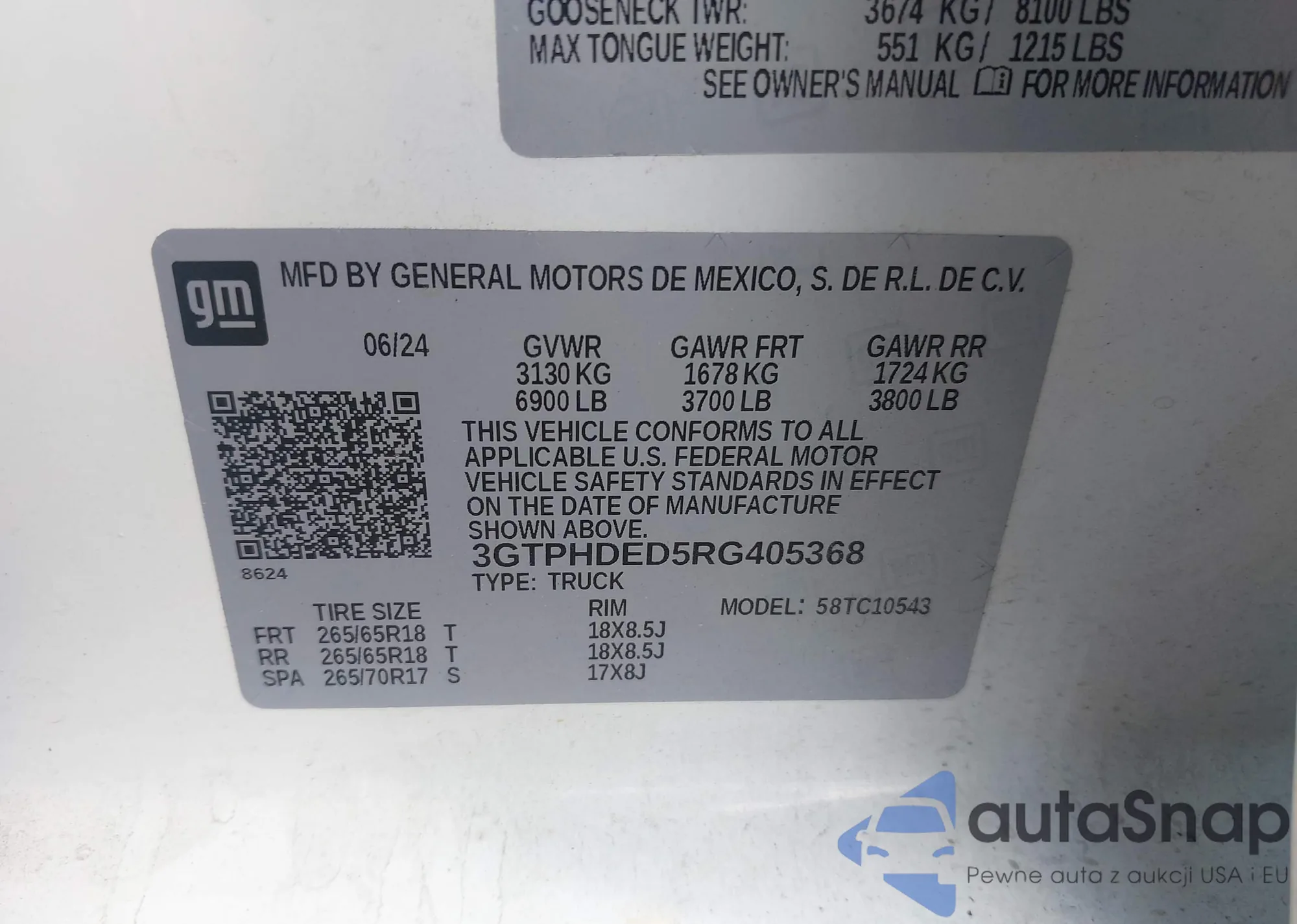VIN: 3GTPHDED5RG405368