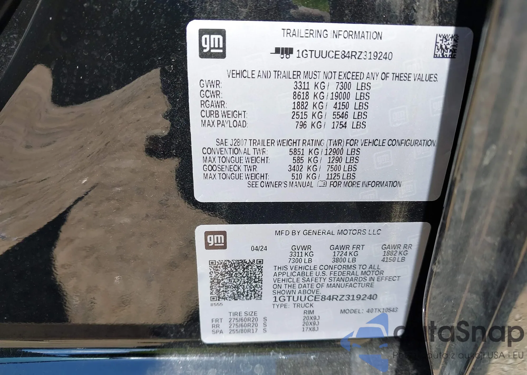 VIN: 1GTUUCE84RZ319240
