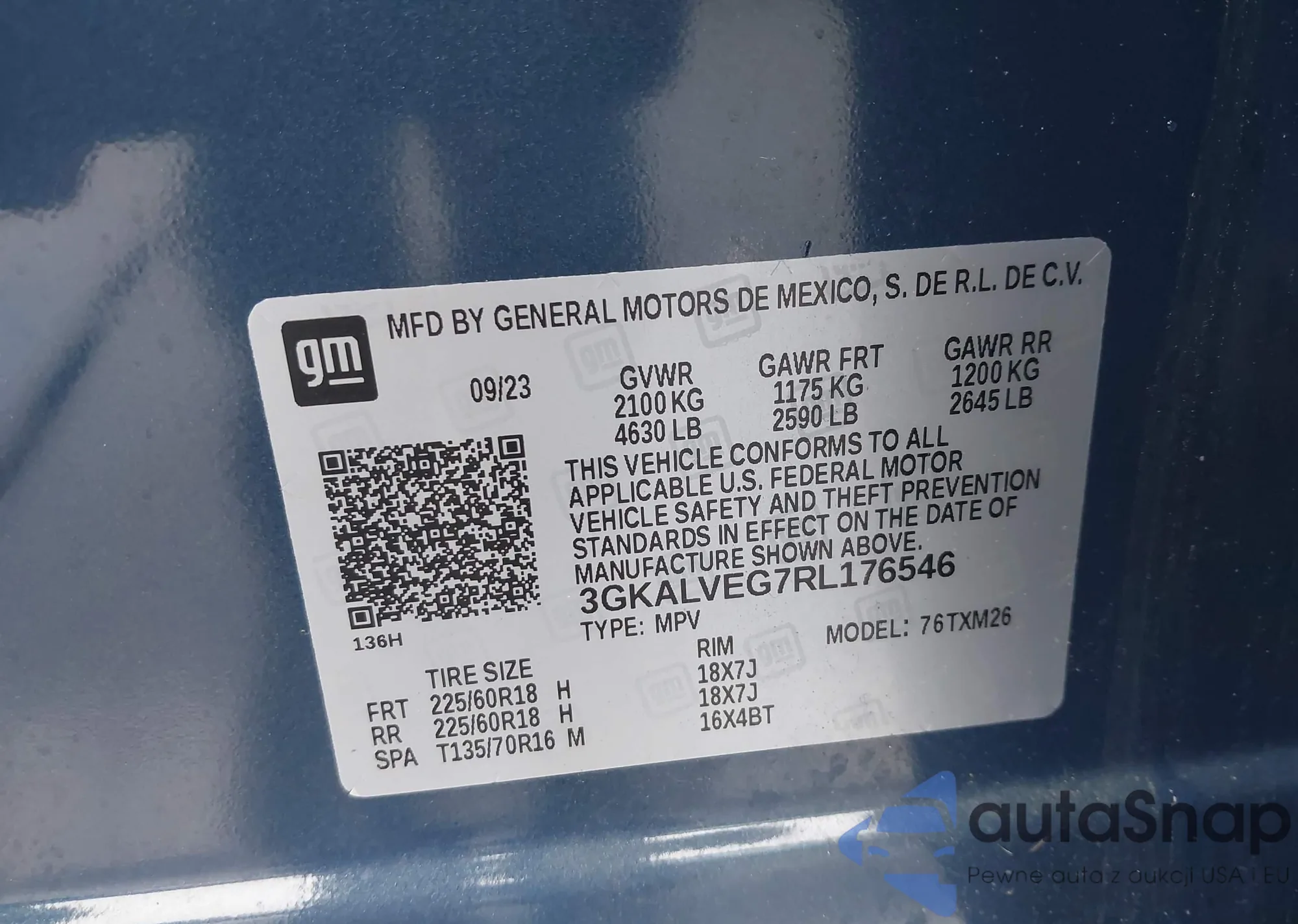 VIN: 3GKALVEG7RL176546