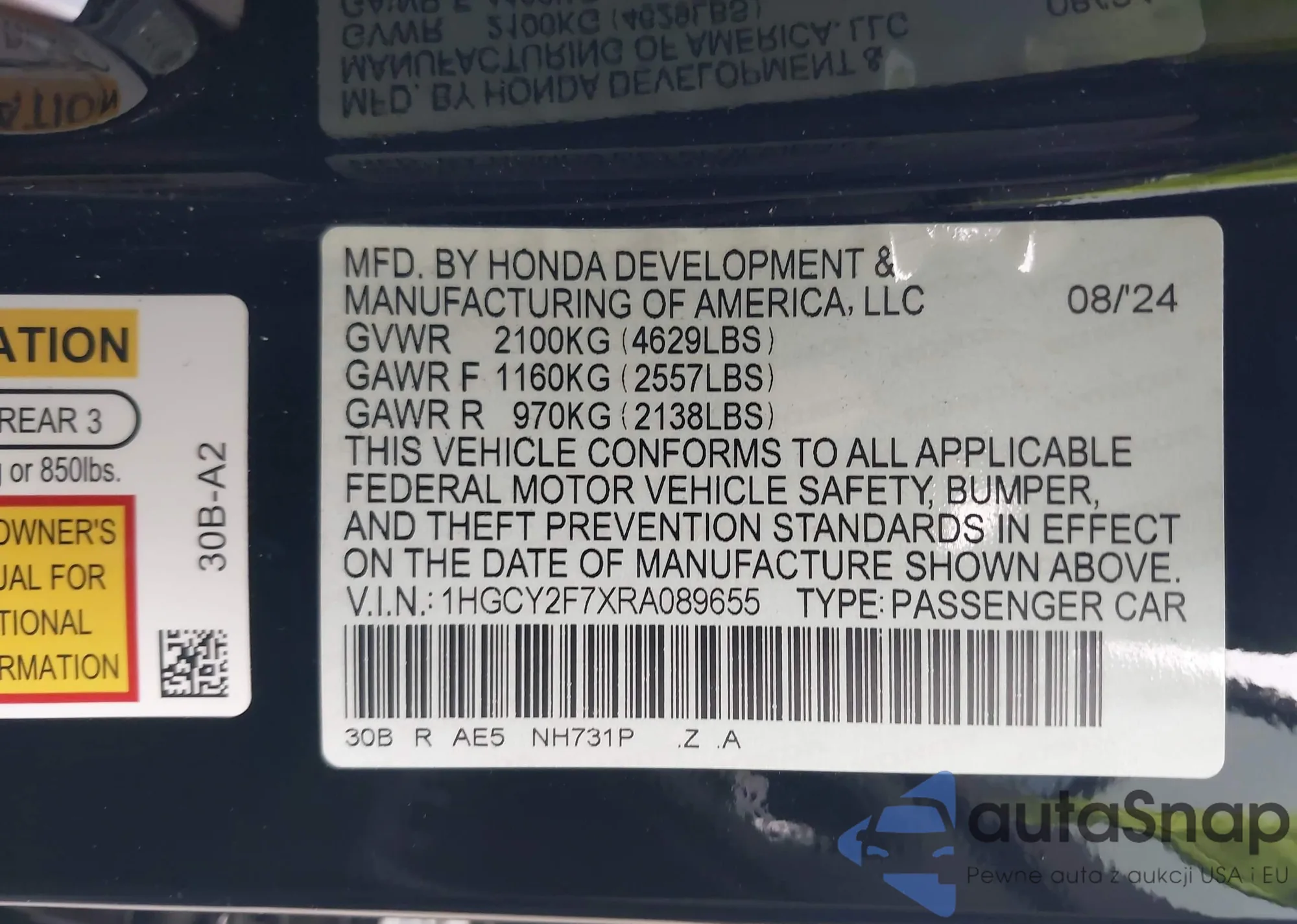 VIN: 1HGCY2F7XRA089655