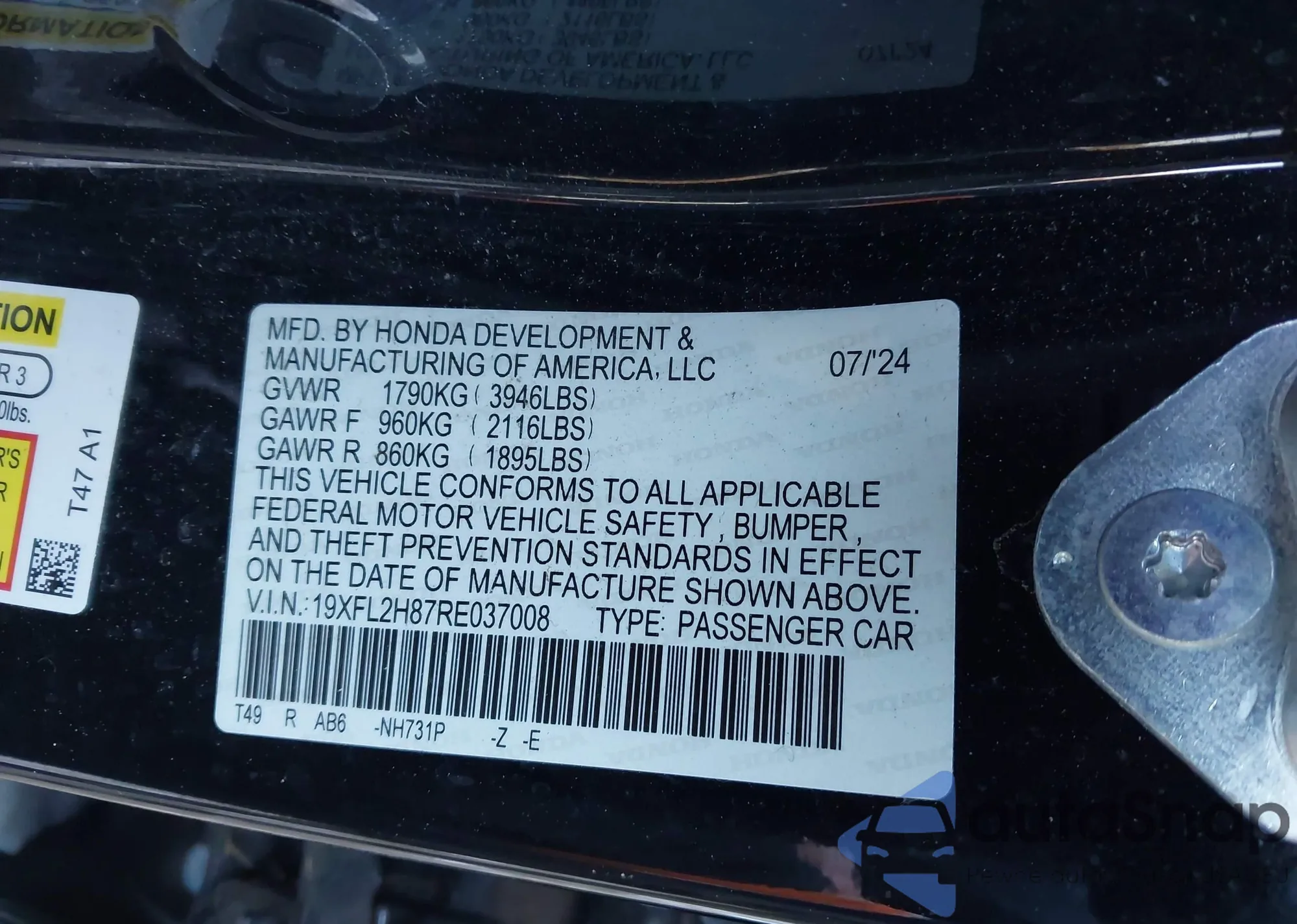 VIN: 19XFL2H87RE037008