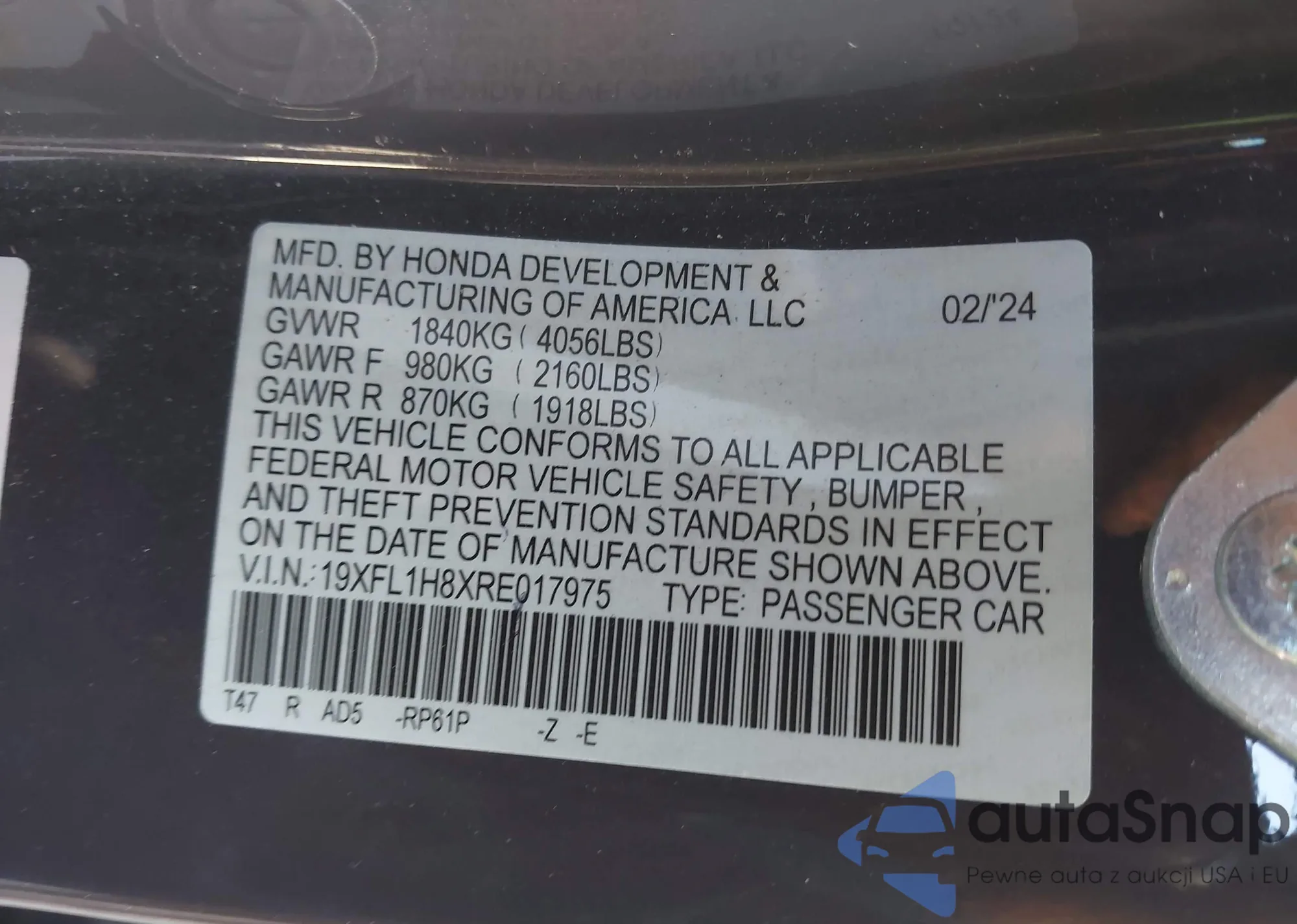 VIN: 19XFL1H8XRE017975