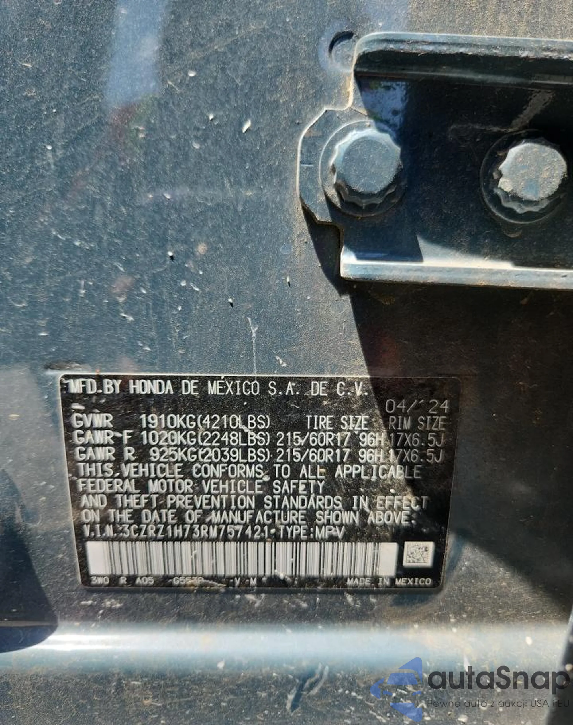 VIN: 3CZRZ1H73RM757421